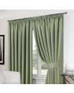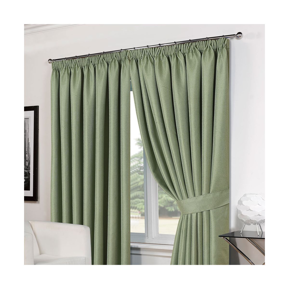 Luxury Basket Weave Lined Tape Top Curtains with Tiebacks - Soft Green 46"x72"