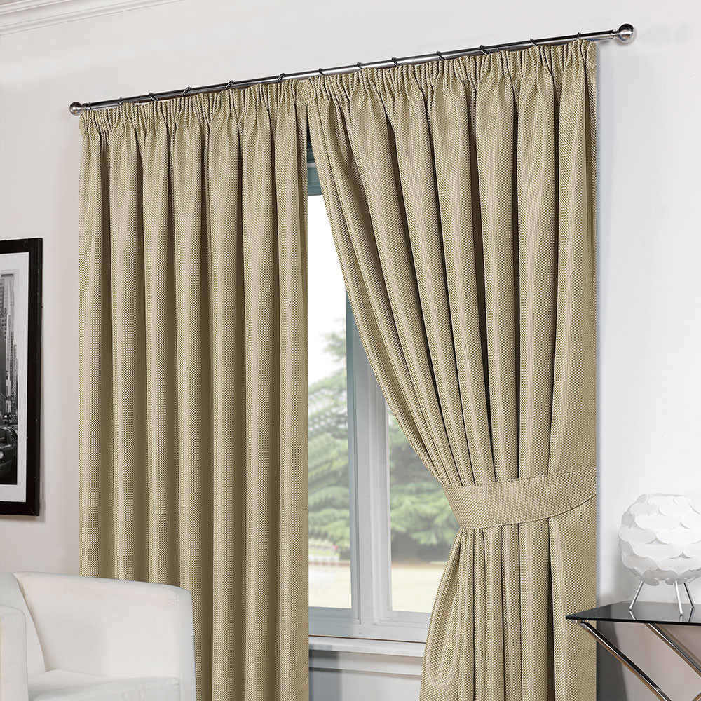Luxury Basket Weave Tape Top Lined Curtains with Tiebacks - Beige 46"x72"