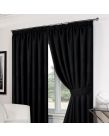 Luxury Basket Weave Tape Top Lined Curtains with Tiebacks - Black 90"x72"