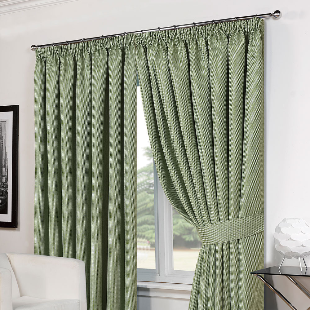 Luxury Basket Weave Tape Top Lined Curtains with Tiebacks - Soft Green 66"x90"