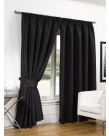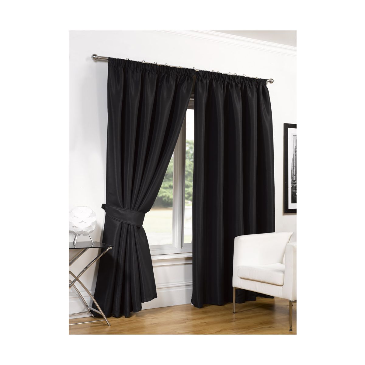 Luxury Faux Silk Blackout Curtains Including Tiebacks - Black 46x54
