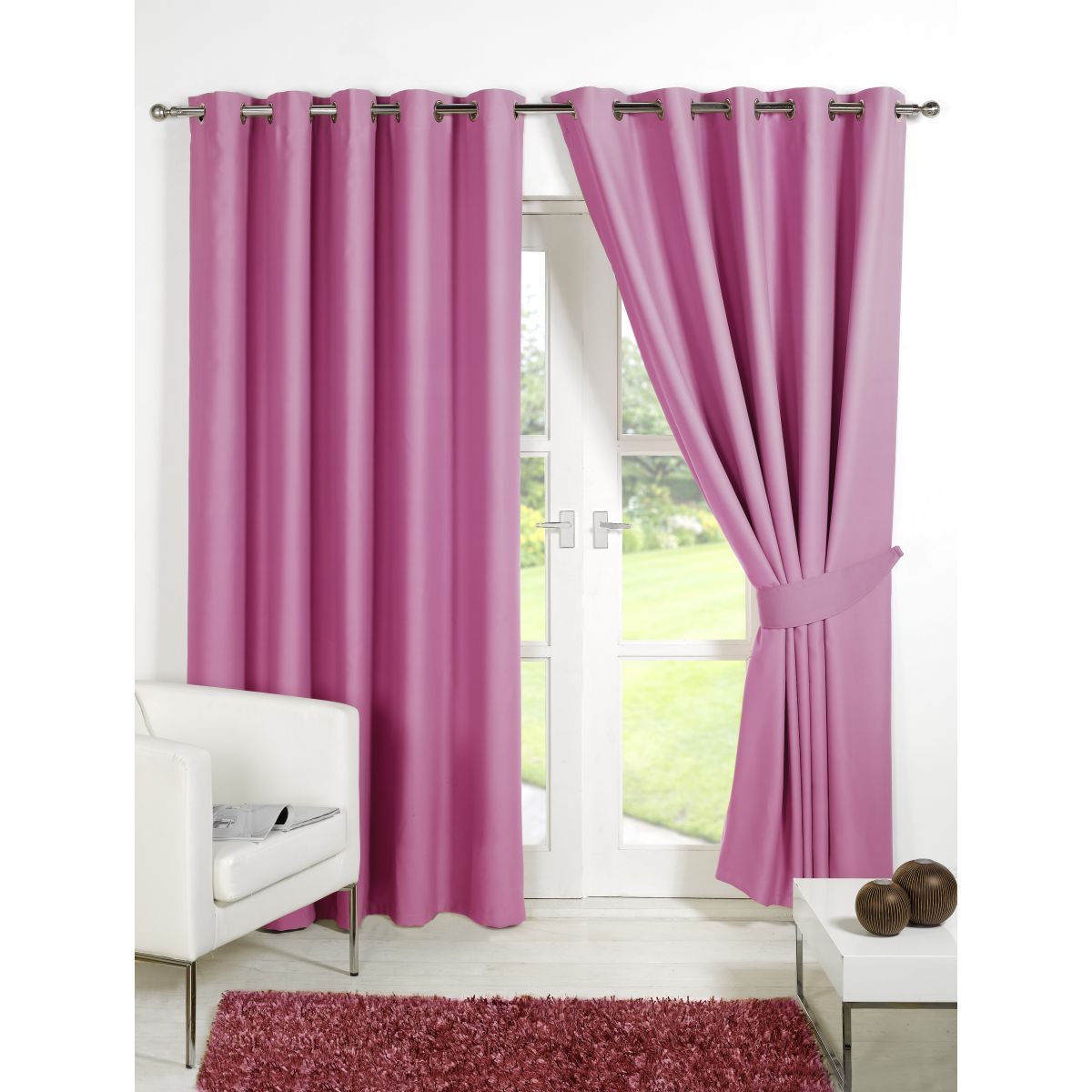 Eyelet Blackouts Include: A Pair of Curtains and a free pair of matching Tiebacks ? so 4 pieces in total. Please note the door curtain is only one piece and no tieback is included.