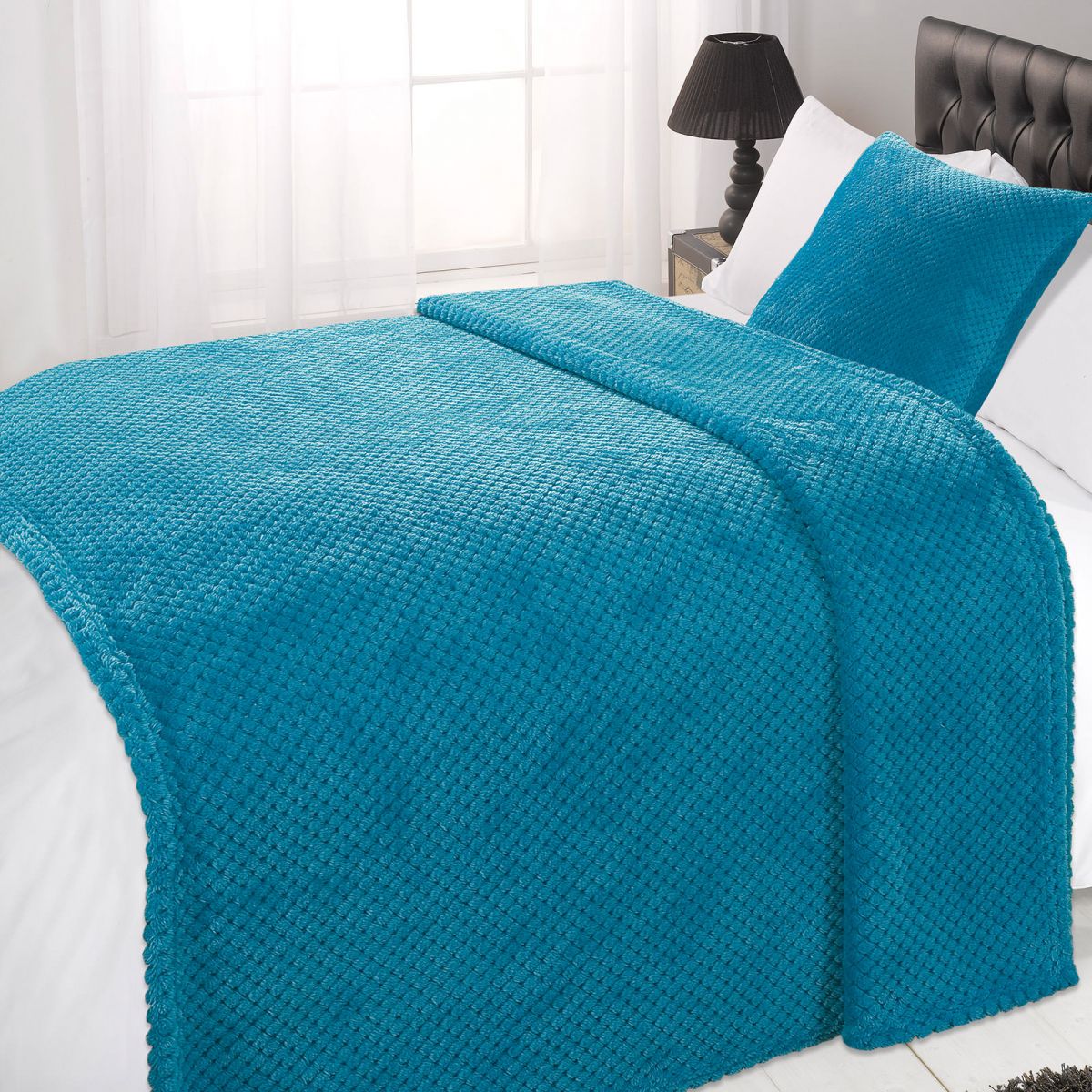 Luxury Waffle Single Throw -Teal