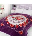 Luxury Warm Soft Large Mink Faux Fur Rose Floral Aubergine Sofa Bed Blanket Throw