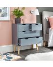 Transform your bedroom with a classic 4-drawer chest in a modern Scandi design that's ideal for a style-conscious contemporary space. The simple construction offers two full-width and two half-width drawers, each with neat cut-out handles. The smooth painted finish is available in a selection of on-trend colours – including the new season's warm pink, soft green and ink blue shades – and mounted on slender mid-century-inspired pale-wood legs. A timeless choice. Simple Scandi styling in exciting new shades Cut-out pulls further accentuate the minimalist Scandi style 2+2 drawers give you over 30 litres of storage space Assembled Size: 69.5 x 60 x 30