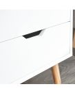 Spruce up your bedroom with a funky Nyborg bedside table – or two! This Scandi-inspired unit makes a virtue out of simplicity. The classic cuboid form is just the right size to accommodate a lamp and a book or two, while the two handy drawers feature classic cut-out handles for simple yet effective operation. The whole is painted in a choice of on-trend colours – including exciting new shades of warm pink, soft green and ink blue – and mounted on pale-wood legs. Simple Scandi styling combined with on-trend colourways delivers a truly versitle side table. Cut out door pulls further accentuates the minimalist Scandi design. 7 stacked drawers give you over 18 Litres of hidden storage space. Assembled Size: 56 x 40 x 30