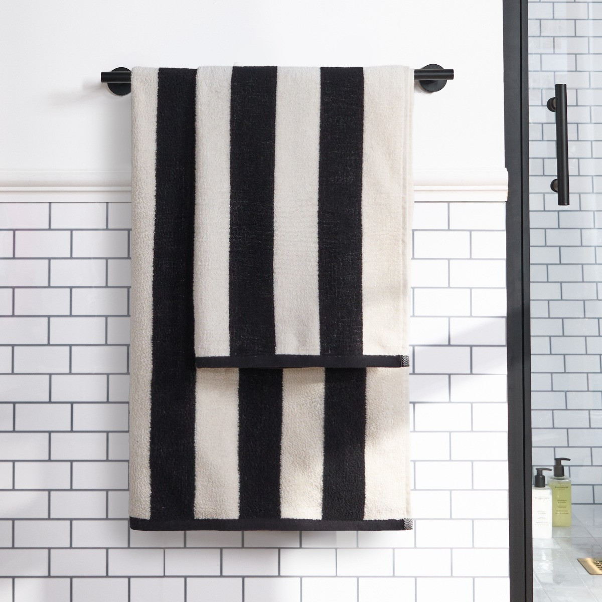 OHS 100% Cotton Jacquard Striped Bath Towel - Monochrome