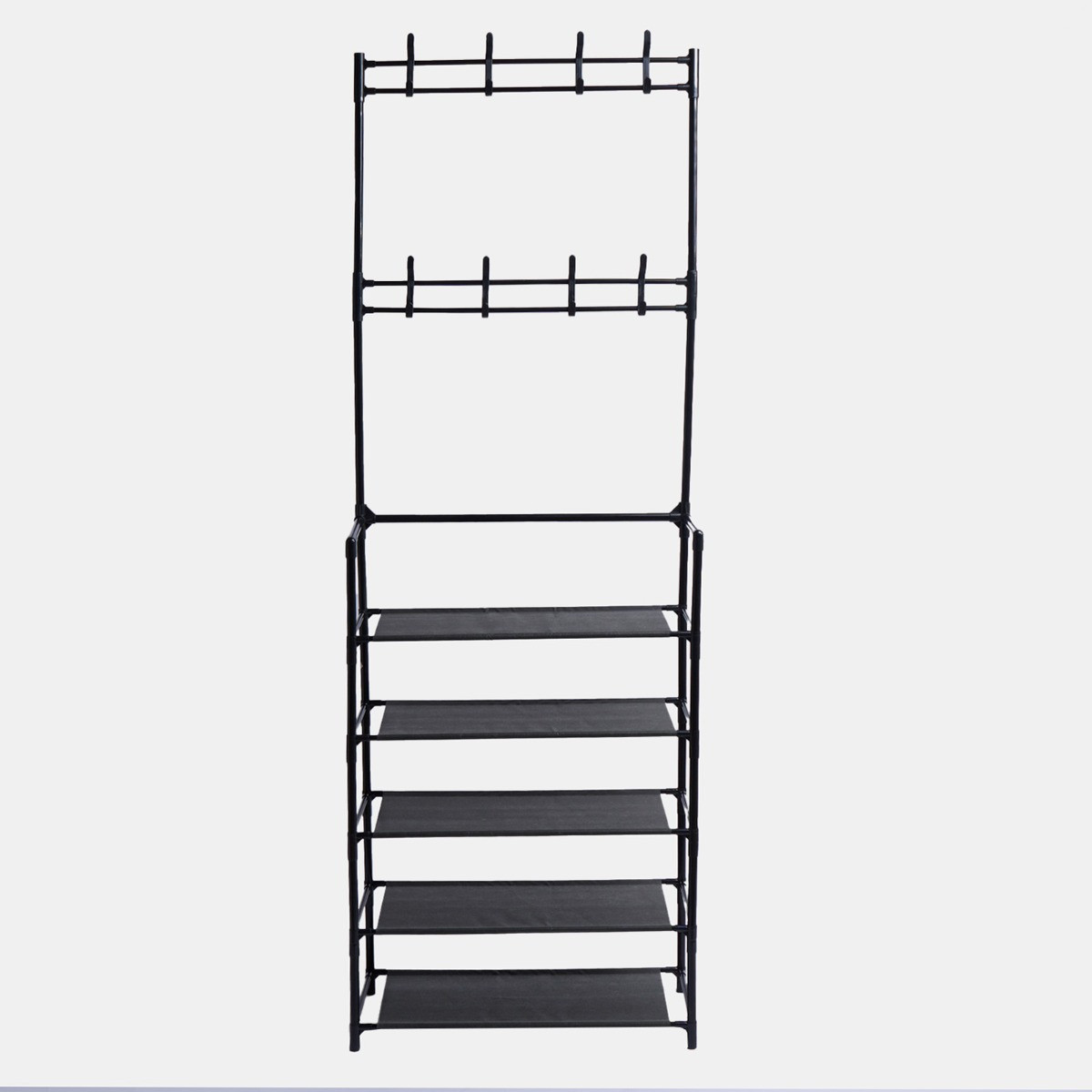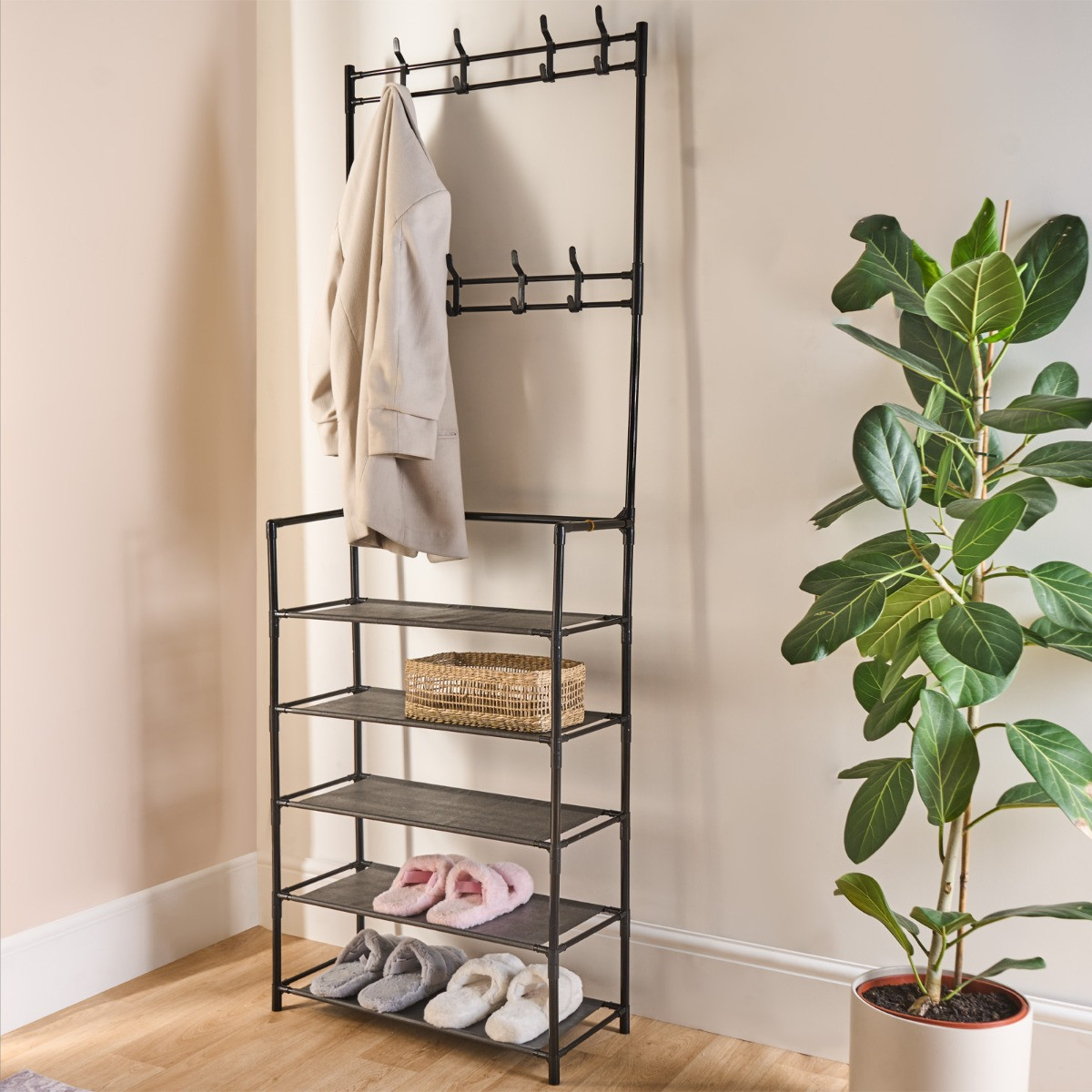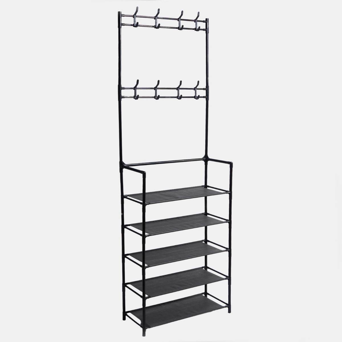 The OHS 16 Hook Garment Rack with Shelving is a versatile storage solution designed to keep your space organised. Featuring 16 hooks arranged in two rows of 8, it offers ample space for hanging coats, jackets, scarves, and more. The rack also includes 5 fabric shelves, perfect for storing shoes, baskets, or towels. Ideal for hallways, bathrooms, and bedrooms, this stylish and functional rack helps you maximise your storage while maintaining a tidy and clutter-free environment.