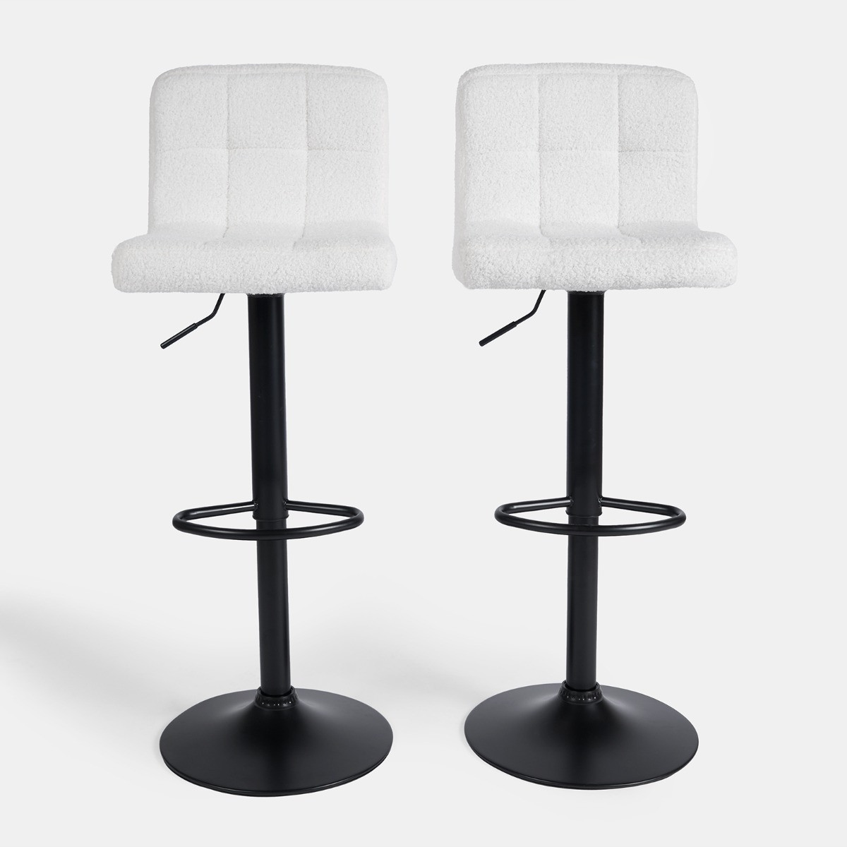 OHS Set of 2 Adjustable Bouclé Bar Stools - Cream