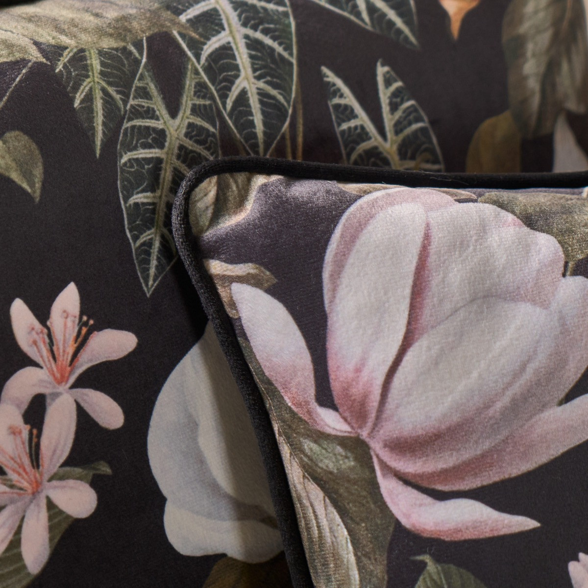 The OHS Matte Velvet Floral Botanics Cushion Covers feature a rich tapestry of blooming florals and exposed petals, creating a deep and immersive botanical scene. Attractive leaves stretch in all directions, complementing the intricate floral design to bring the beauty of nature indoors. The luxurious matte velvet texture enhances the vividness of the botanical pattern, making these cushion covers a perfect choice for adding elegance and natural charm to any space. Ideal for elevating both modern and traditional décor, they create an inviting, nature-inspired atmosphere.