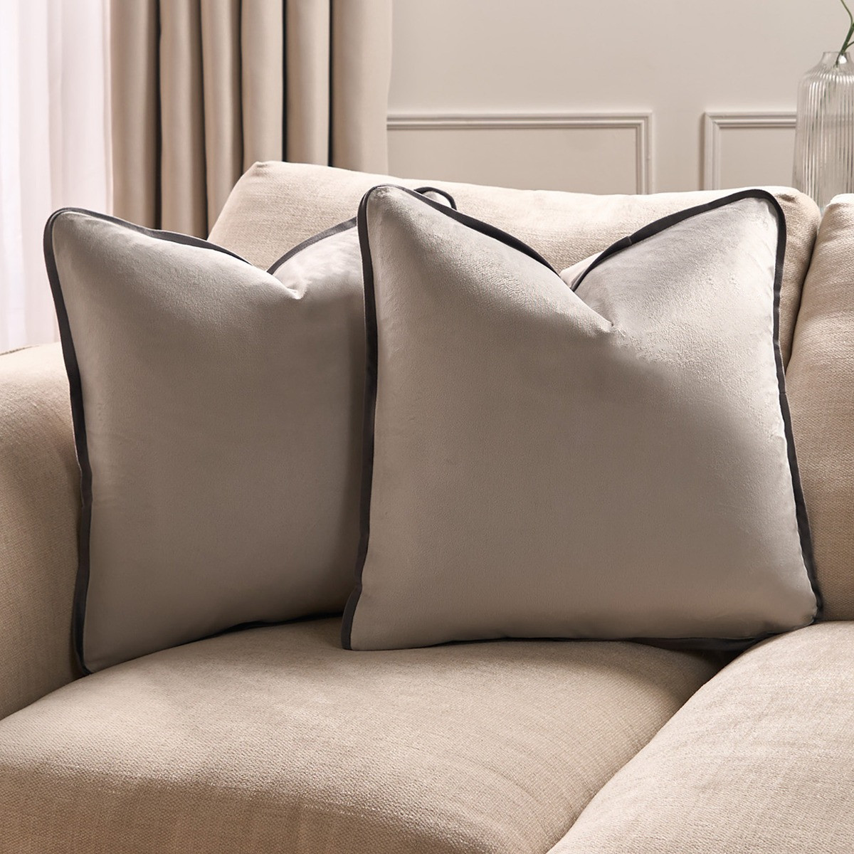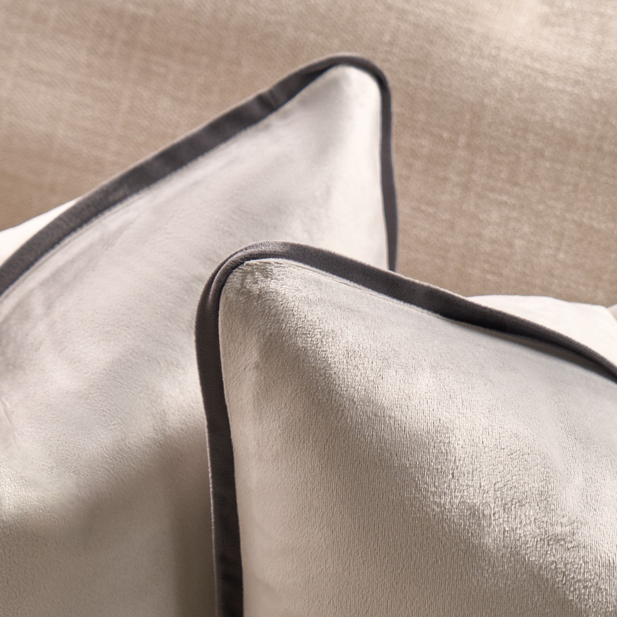OHS 2 Pack Matte Velvet Piped Edge Cushion Covers, 45 x 45cm - Grey