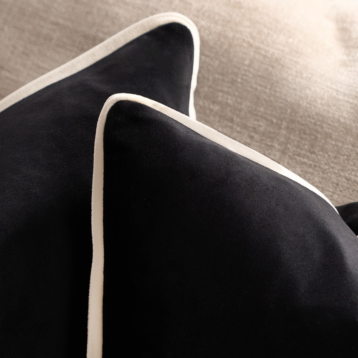 OHS 2 Pack Matte Velvet Piped Edge Cushion Covers, 45 x 45cm - Monochrome