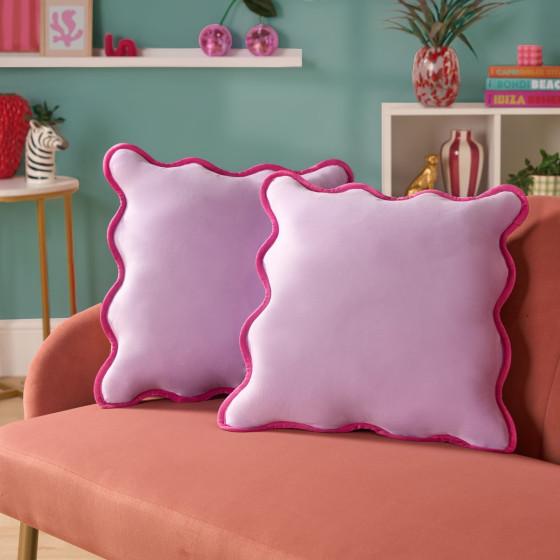 OHS 2 Pack Matte Velvet Scallop Edge Cushion Covers, 45 x 45cm - Lilac/Pink