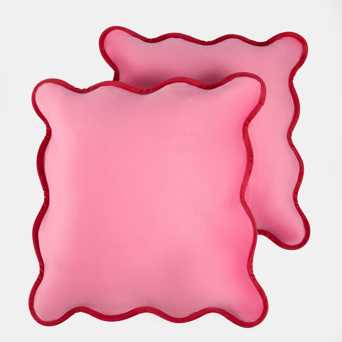 OHS 2 Pack Matte Velvet Scallop Edge Cushion Covers, 45 x 45cm - Pink/Red