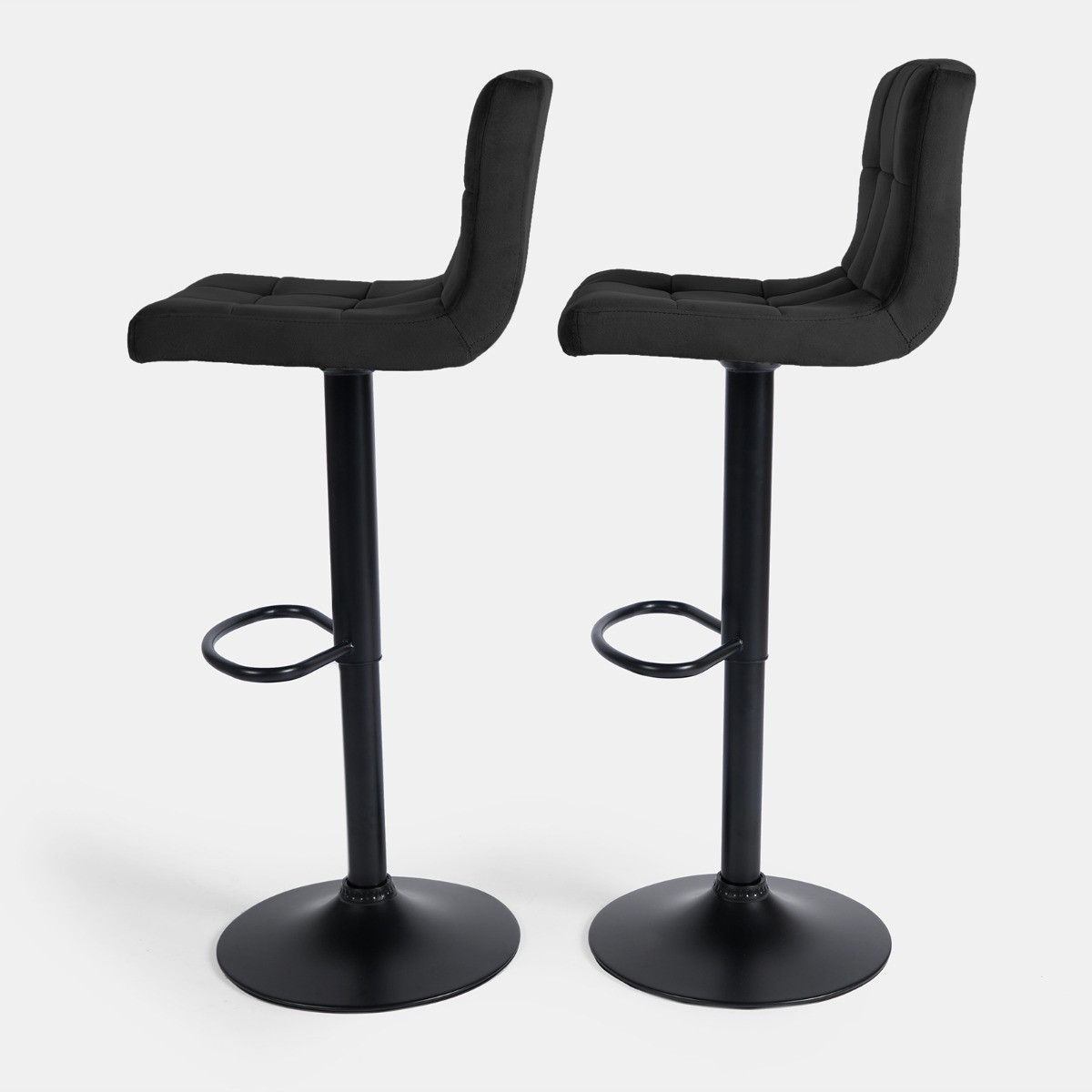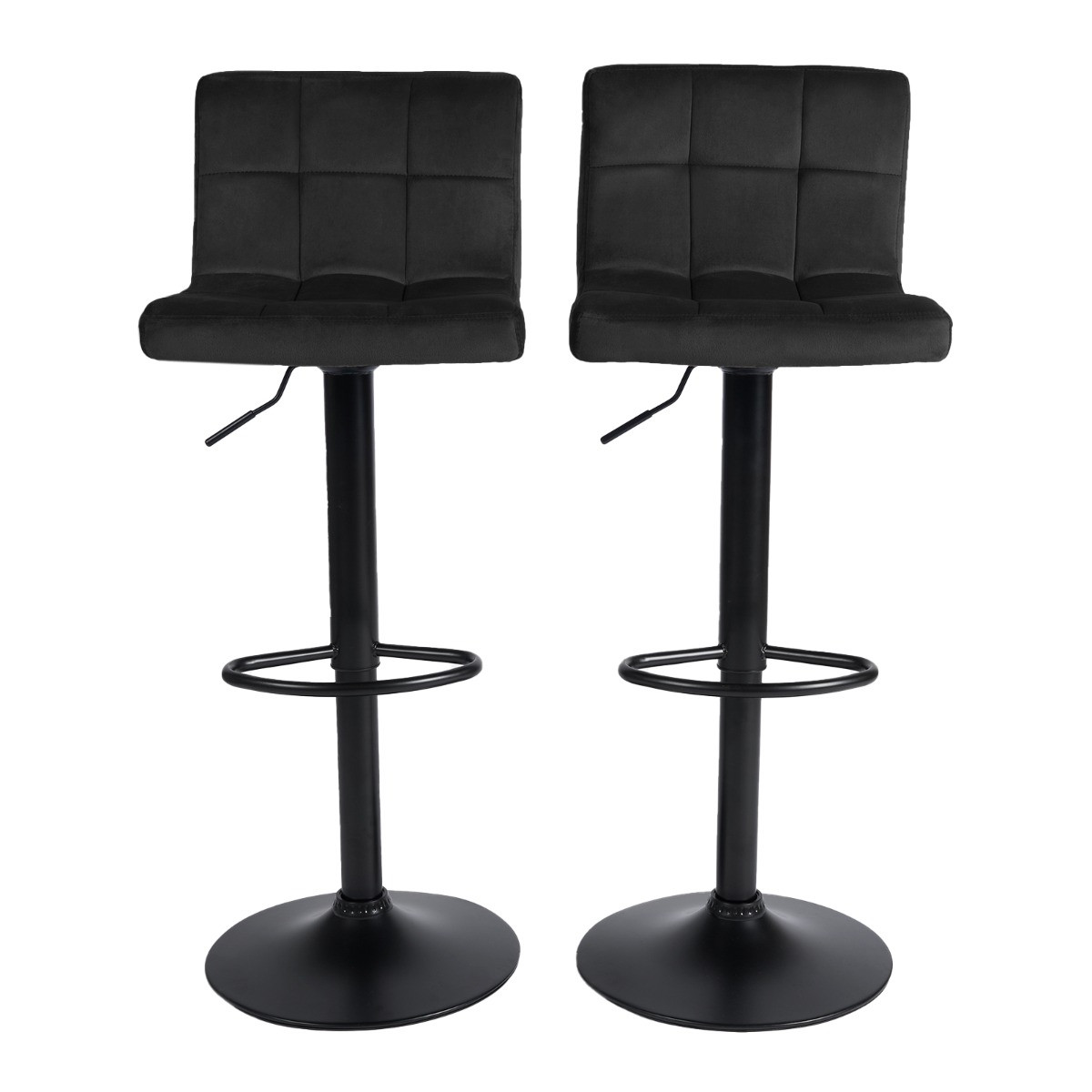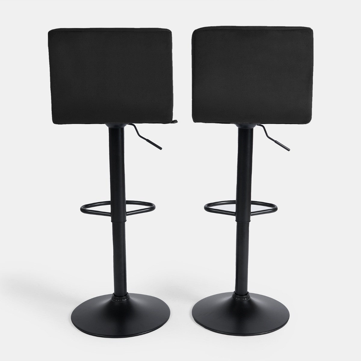 OHS Set of 2 Adjustable Velvet Bar Stools - Black