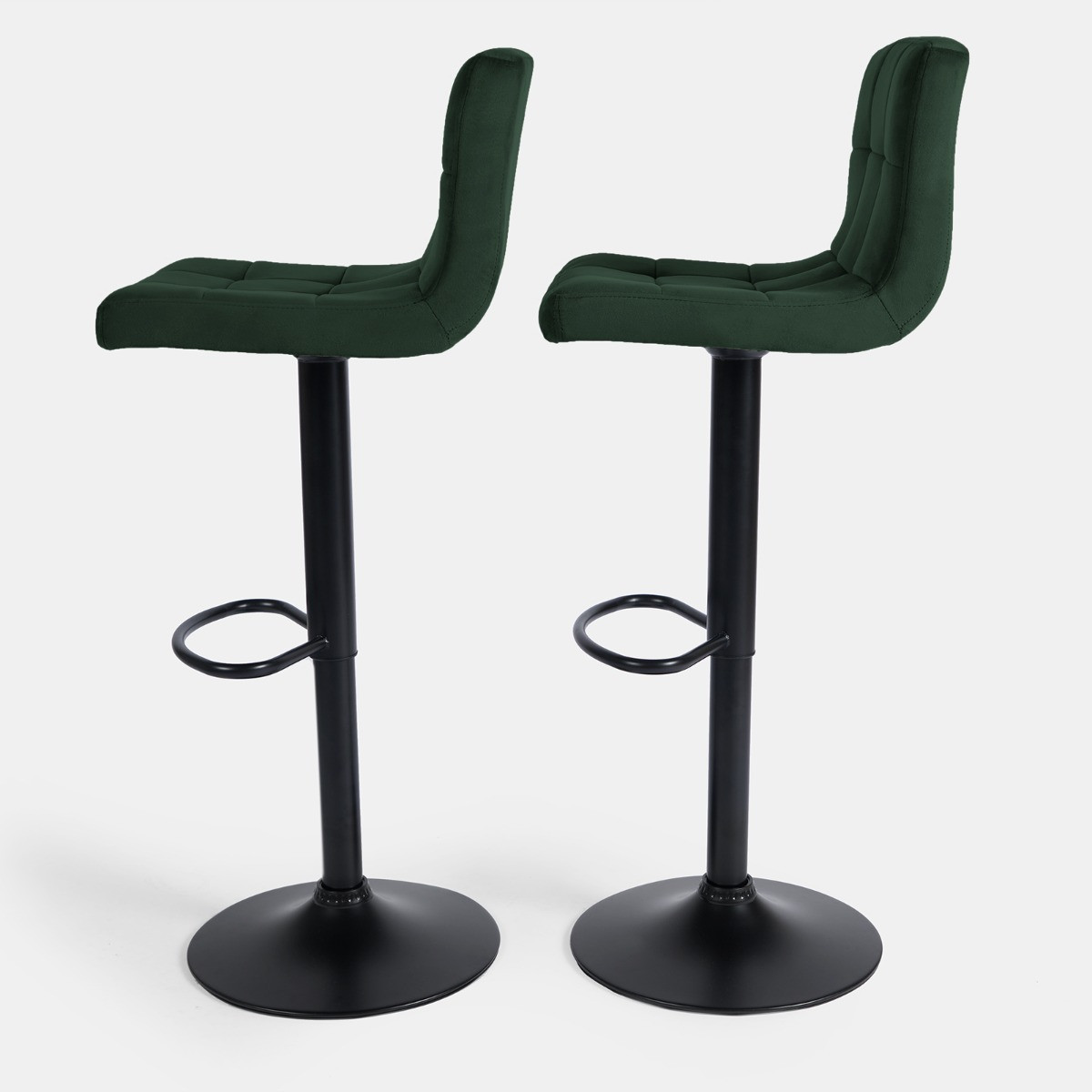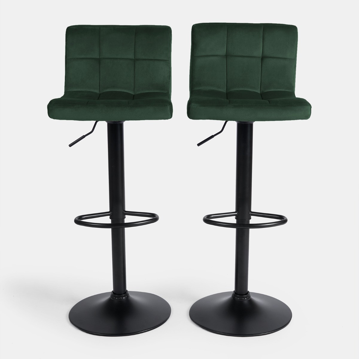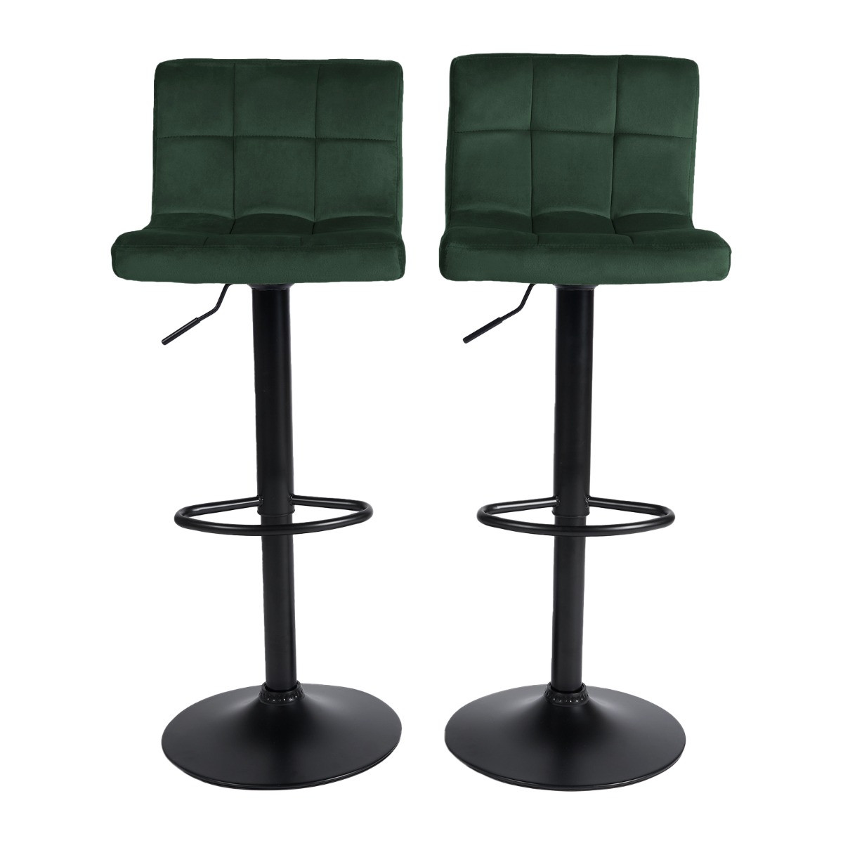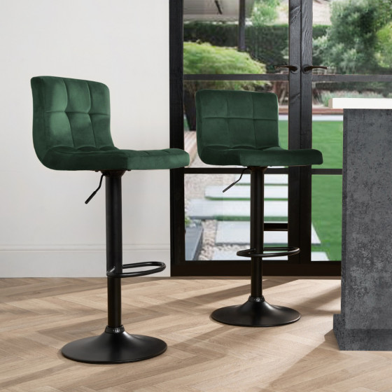 OHS Set of 2 Adjustable Velvet Bar Stools - Forest Green