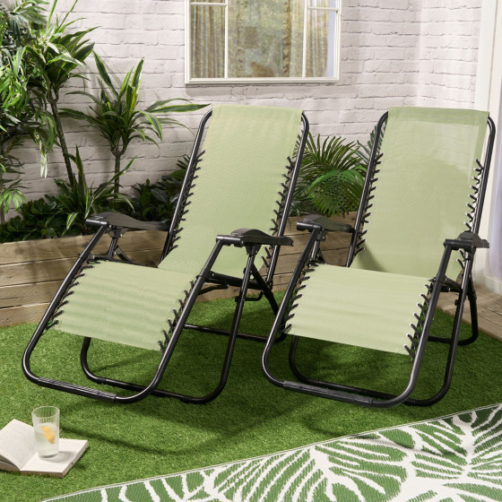 OHS 2 Pack Zero Gravity Sun Lounging Garden Chairs - Sage