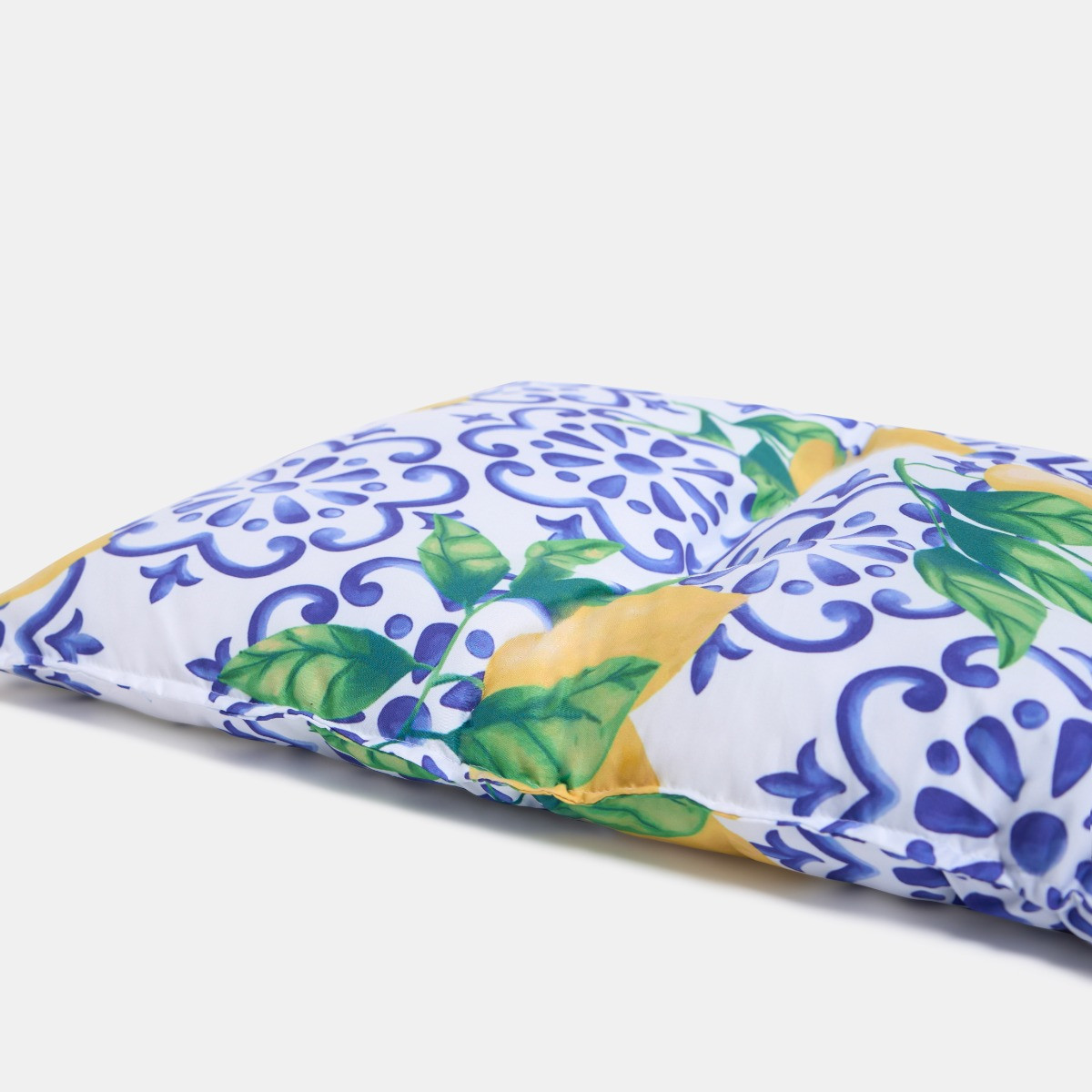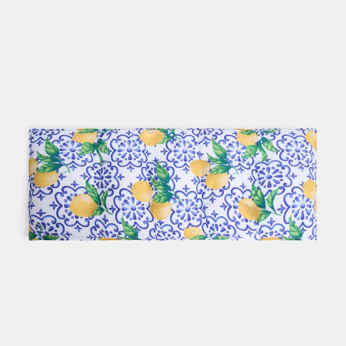 The OHS 2-Seater Indoor/Outdoor Lemon Print Bench Pad combines a refreshing lemon motif with a cheerful blue and yellow palette. Designed for both comfort and style, this bench pad adds a vibrant touch to your indoor or outdoor seating. Its cushioned surface ensures a comfortable experience, while the durable fabric is weather-resistant for extended use. Ideal for garden benches, patios, or even indoor spaces, it’s a great way to brighten up your seating area. When not in use, store in a dry, indoor place to preserve its look and longevity.