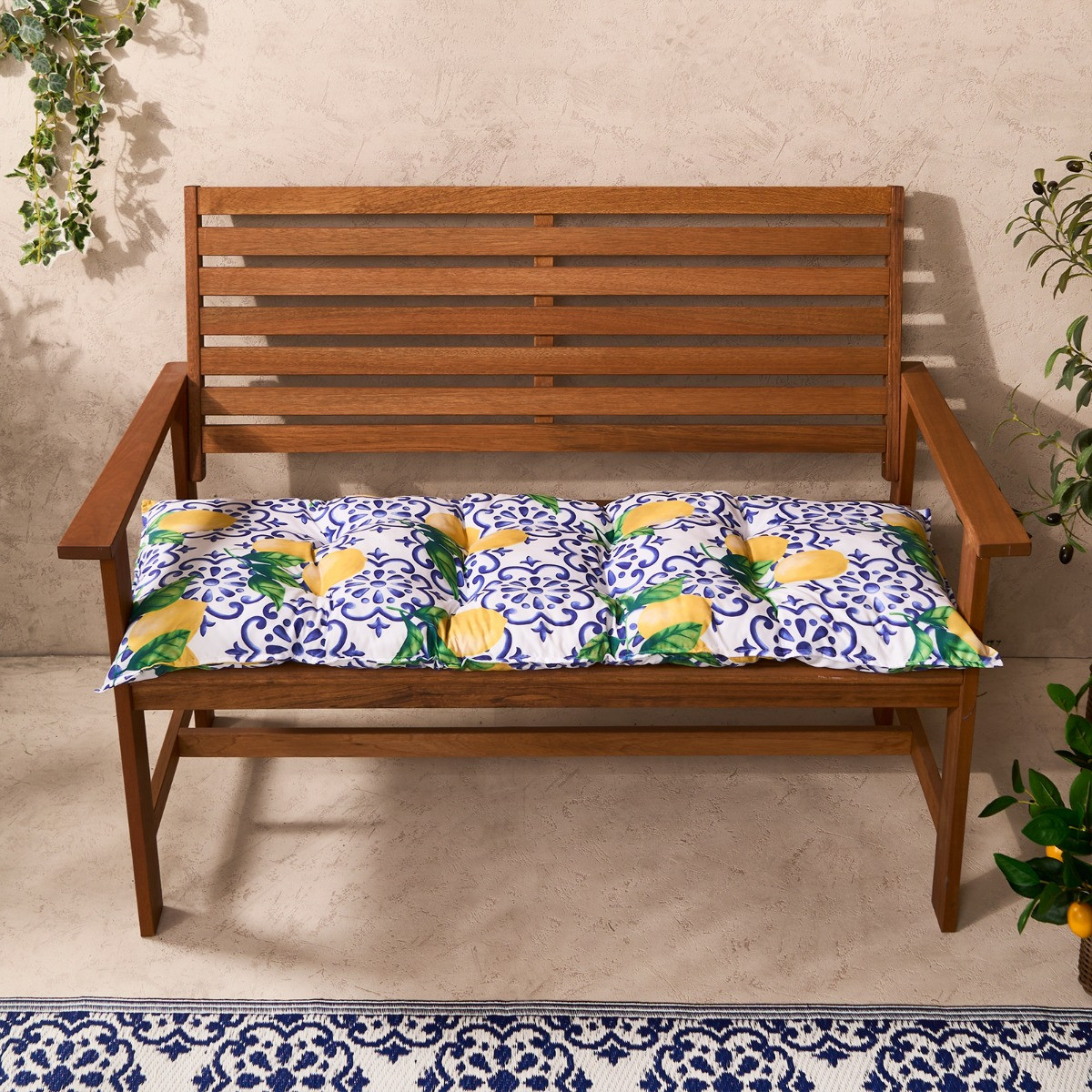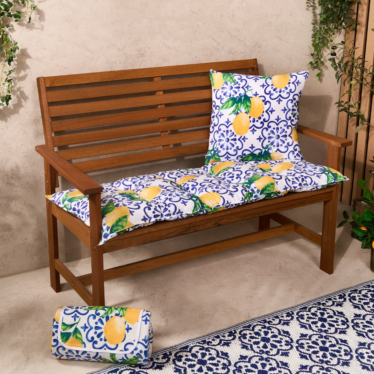 OHS 2-Seater Indoor/Outdoor Lemon Print Bench Pad - White/Blue