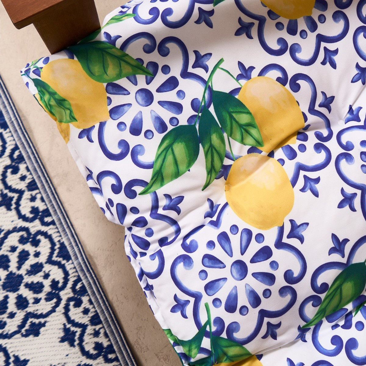 OHS Indoor/Outdoor Lemon Print Seat Pads - Blue/Yellow