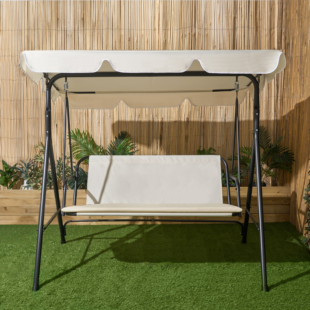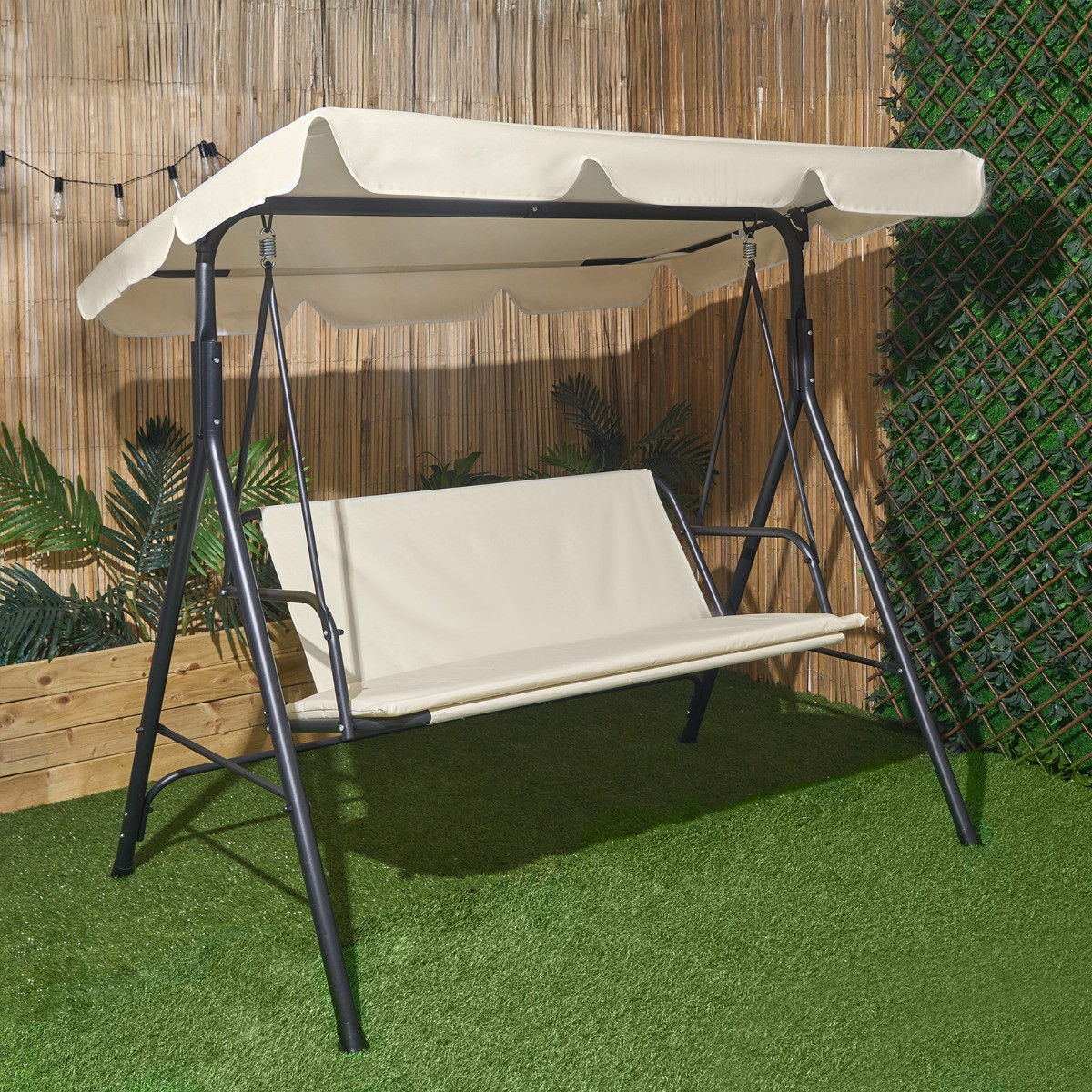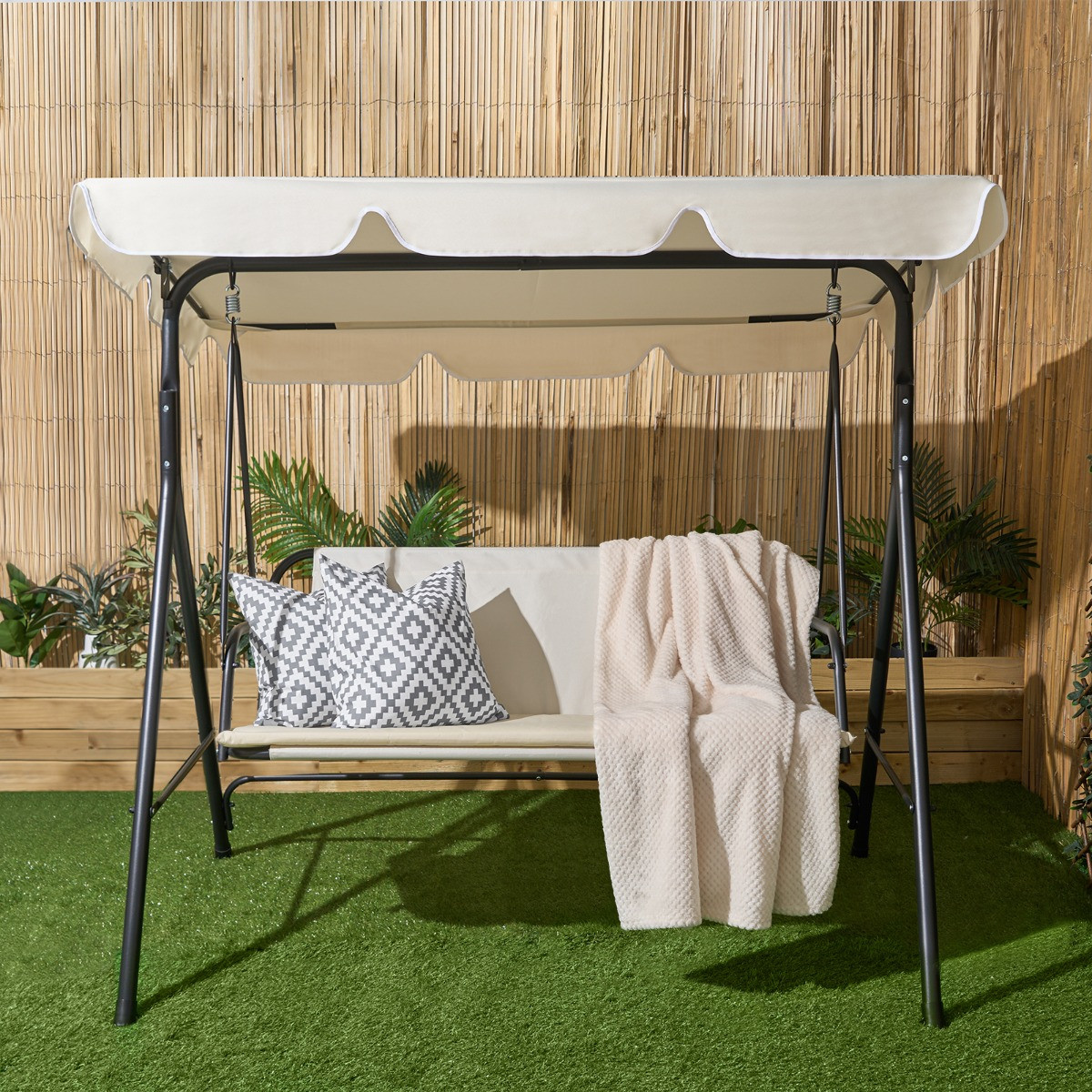 OHS 3 Seater Swing Bench With Canopy - Cream