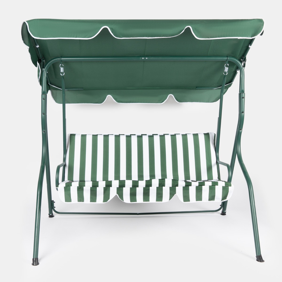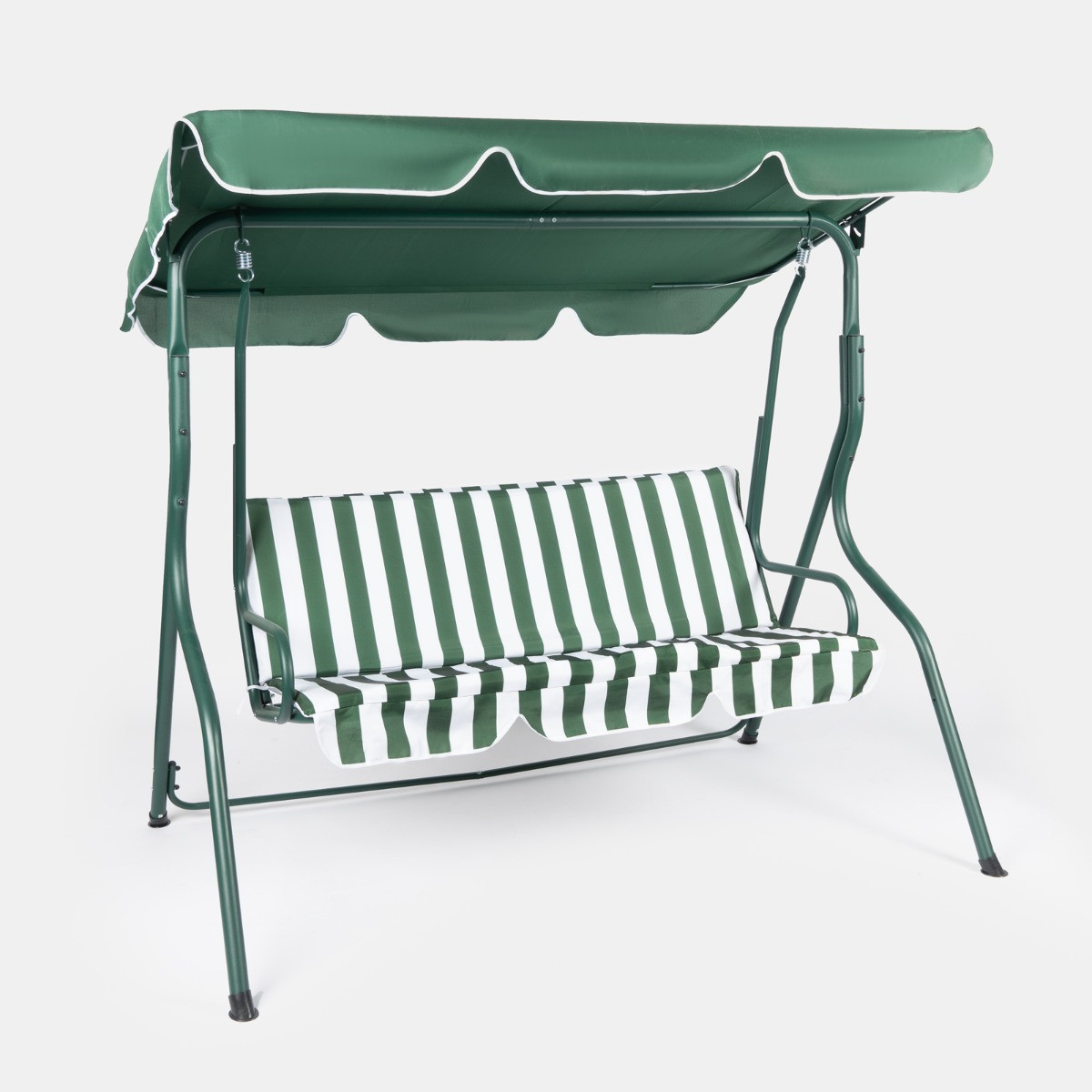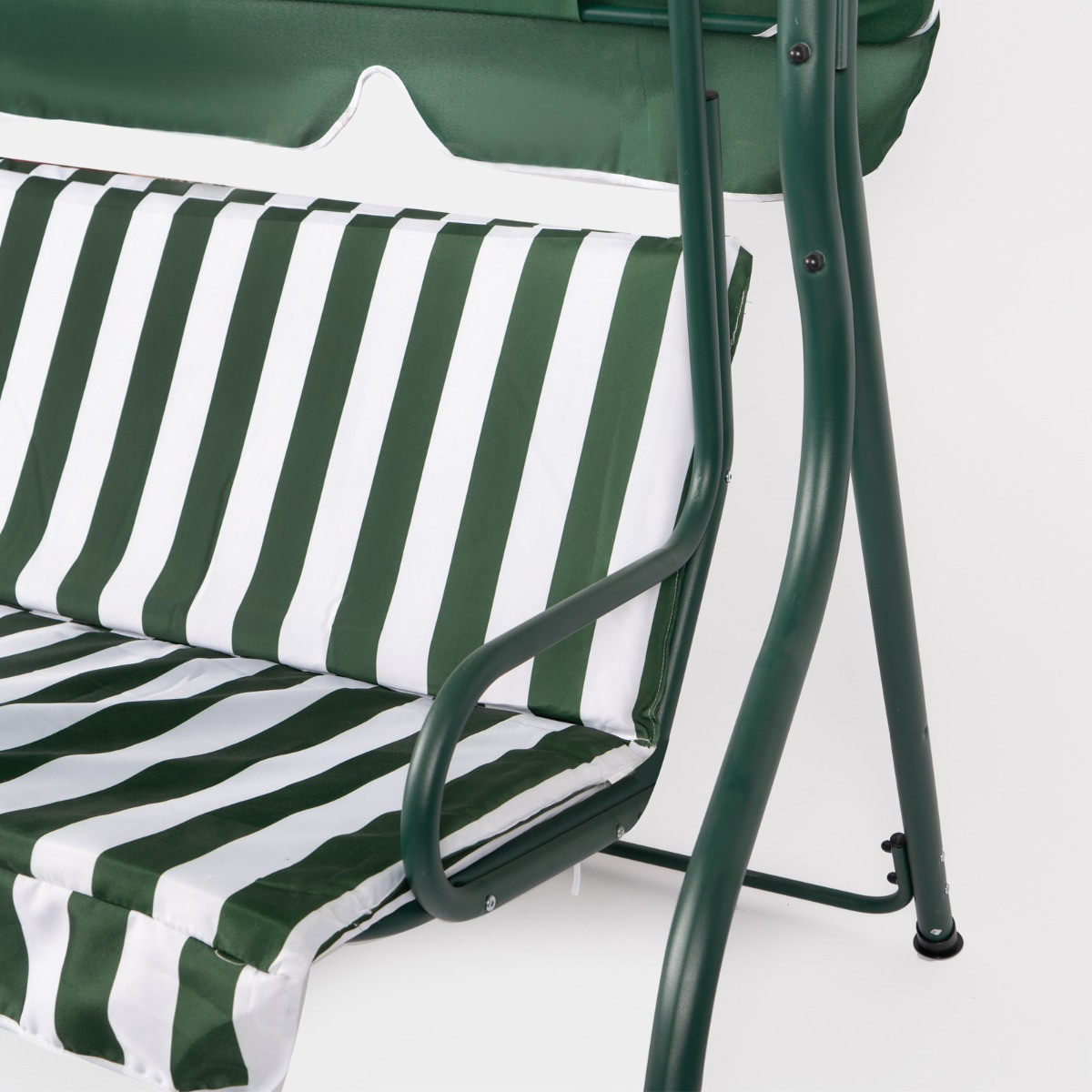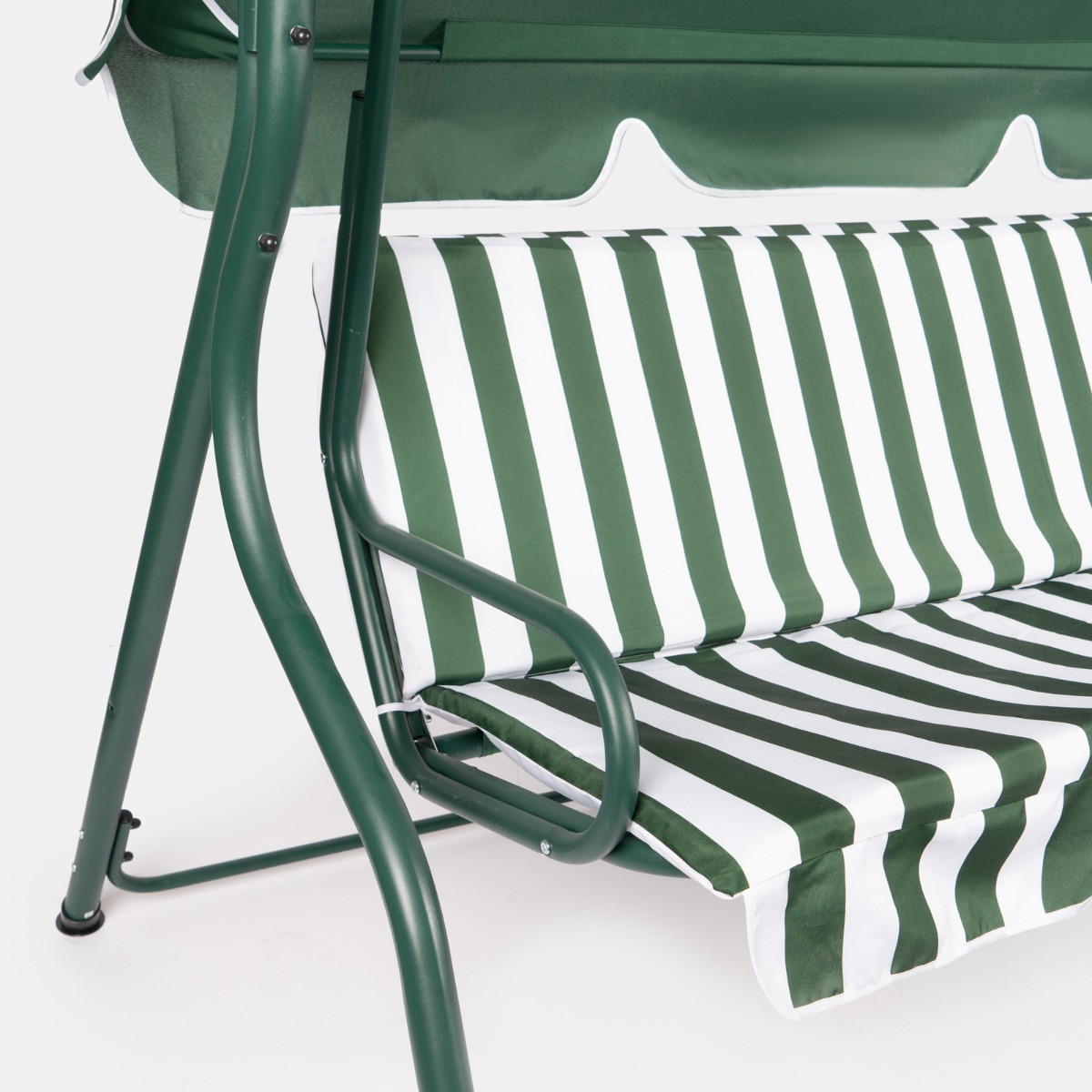 OHS 3 Seater Swing Bench With Canopy - Green/White Stripe