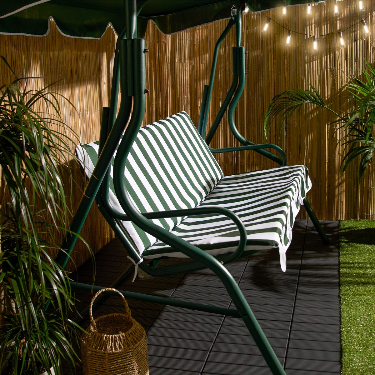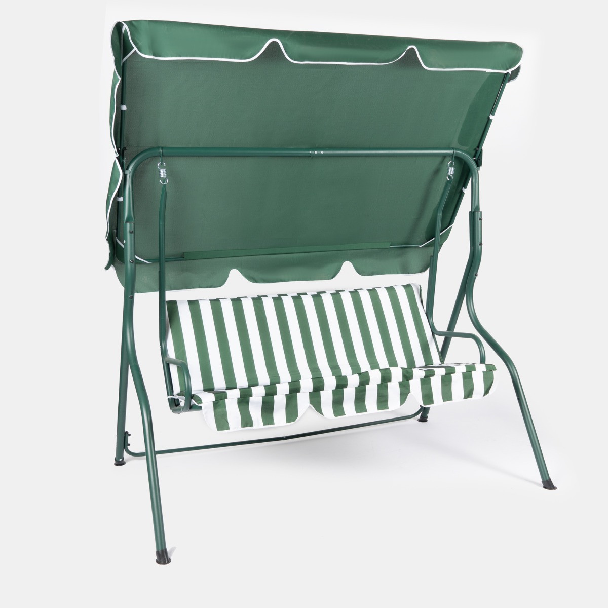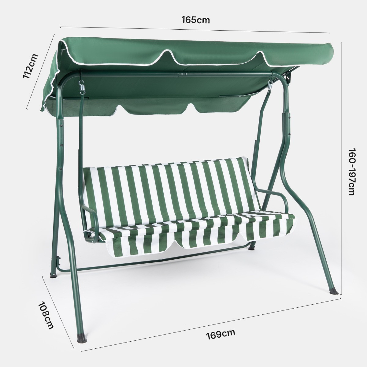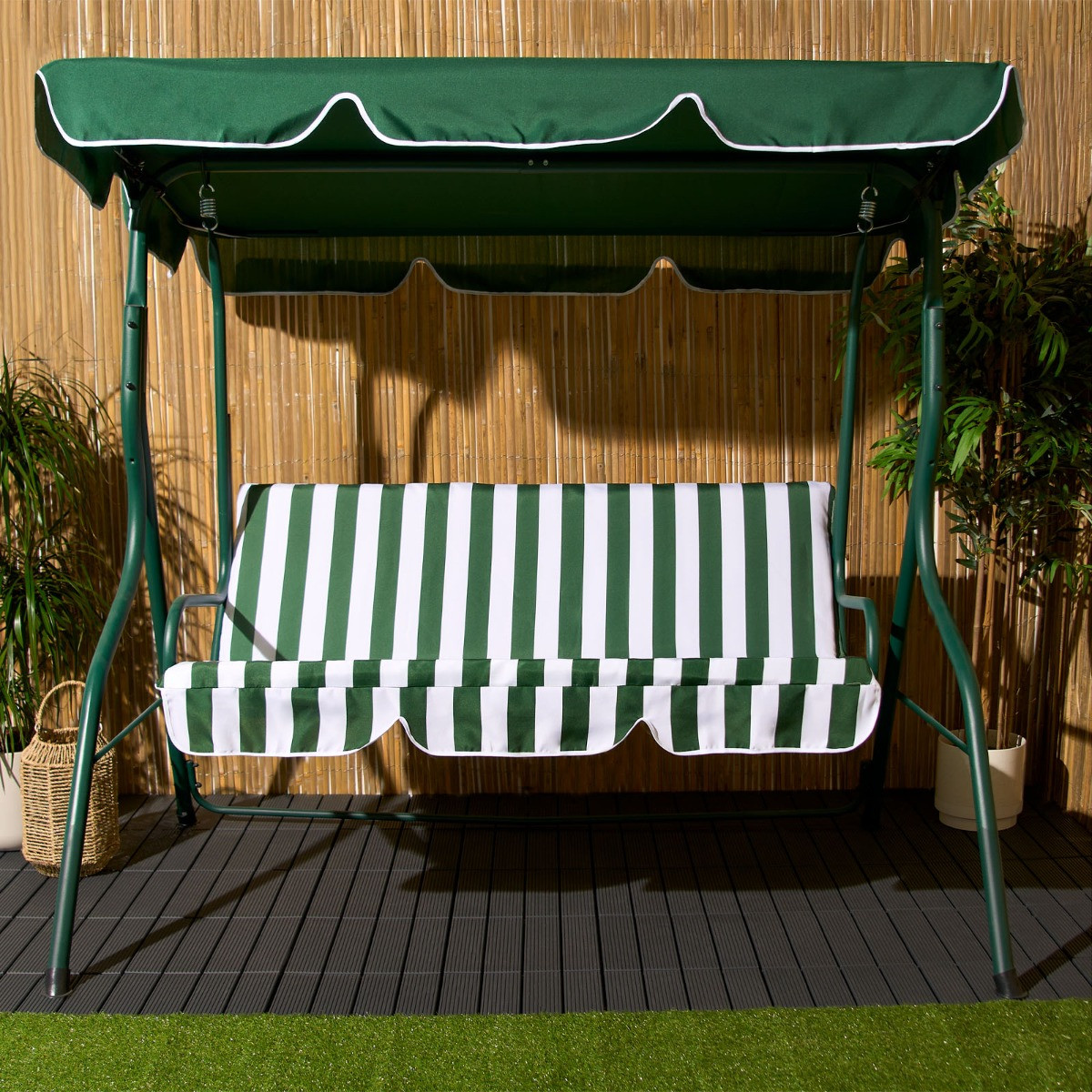 OHS 3 Seater Swing Bench With Canopy - Green/White Stripe
