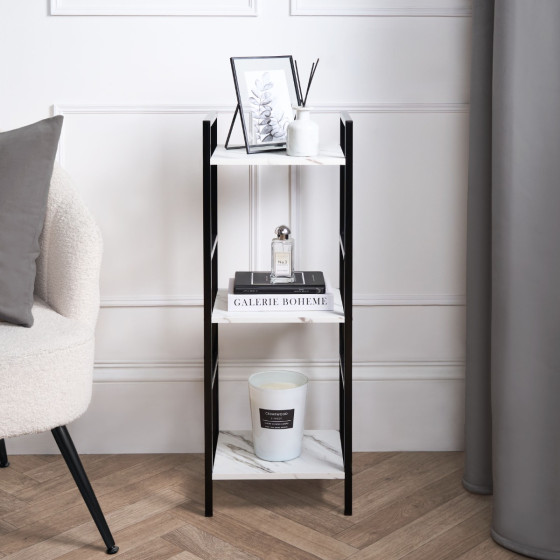 OHS Manhattan Marble Effect 3-Tier Shelving Unit - Black/White