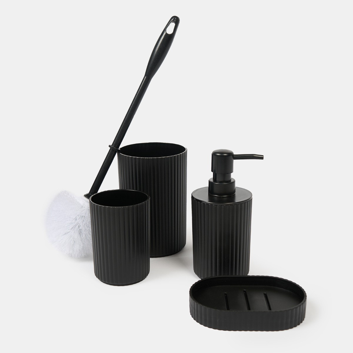 OHS 4-Piece Ribbed Bathroom Accessories Set - Black