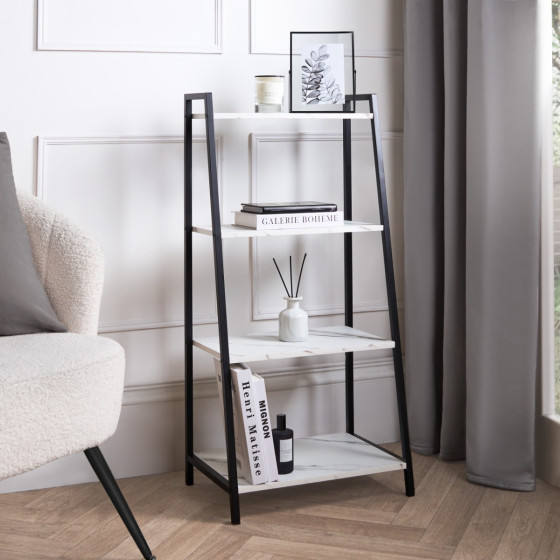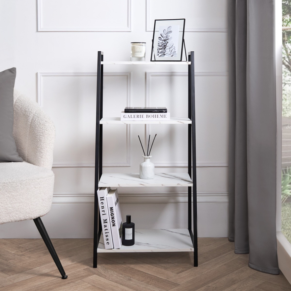 OHS Manhattan Marble Effect 4-Tier Shelving Unit - Black/White
