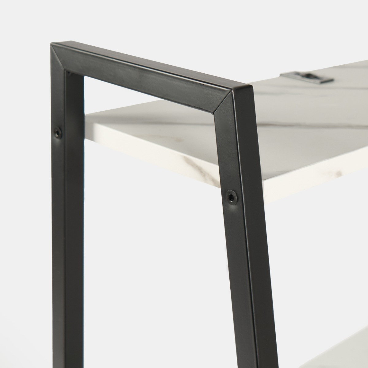 OHS 3 Tier Marble Look Wooden Iron Shelving Unit - White Marble