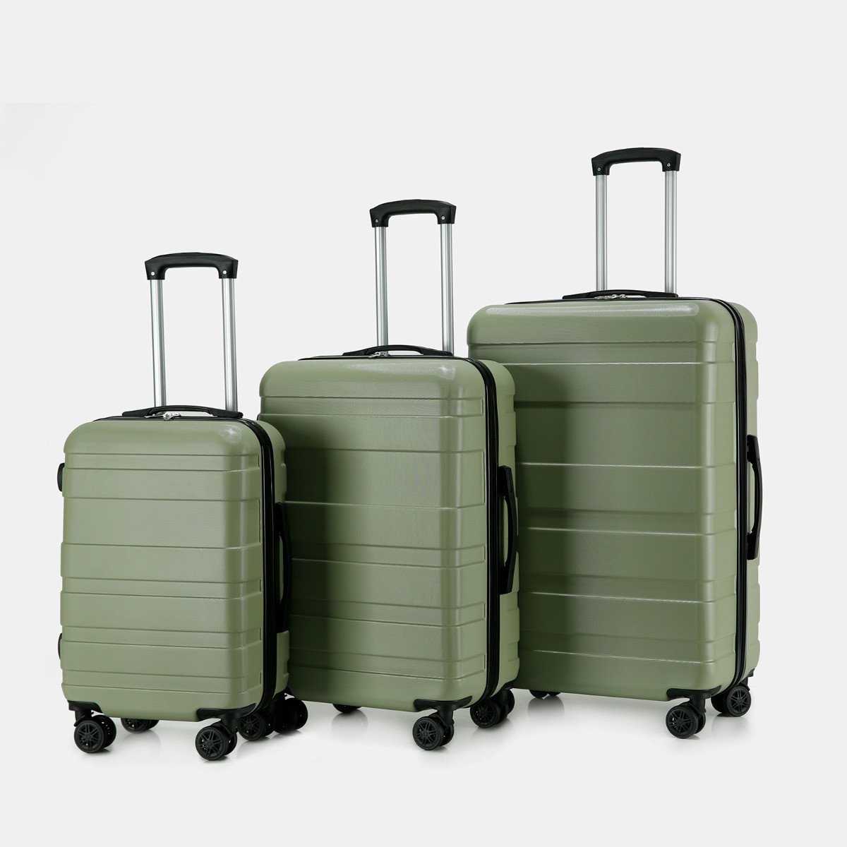 OHS 4 Wheel Hard Shell Suitcase, Olive Green - 3 Pack