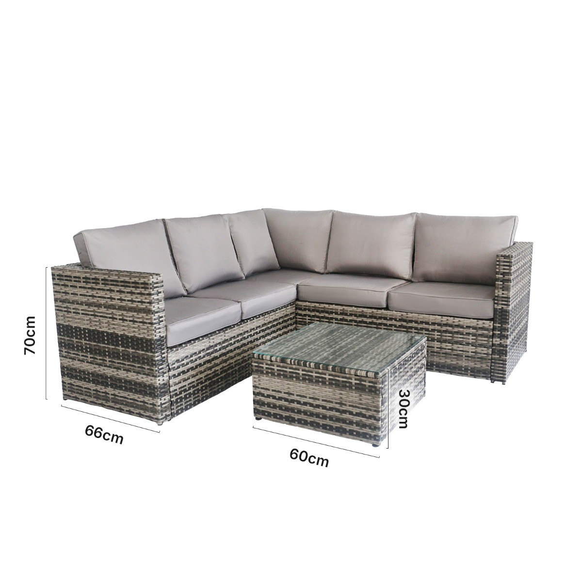 Spacious and versatile, this five-seater sofa set is perfectly suited to gardens, patios, terraces, or conservatories. Its refined rattan design and clean, modern silhouette make it a standout addition, offering a stylish and inviting space to enjoy outdoor living in comfort.