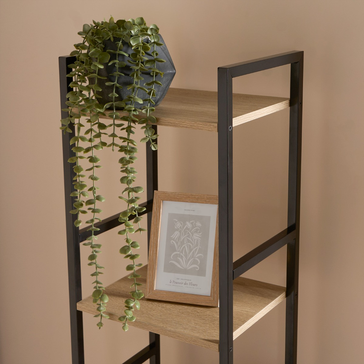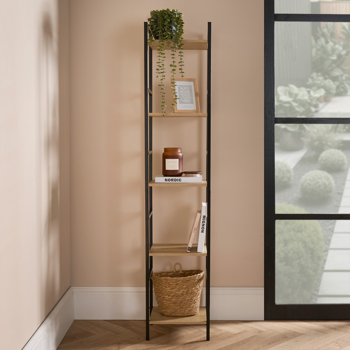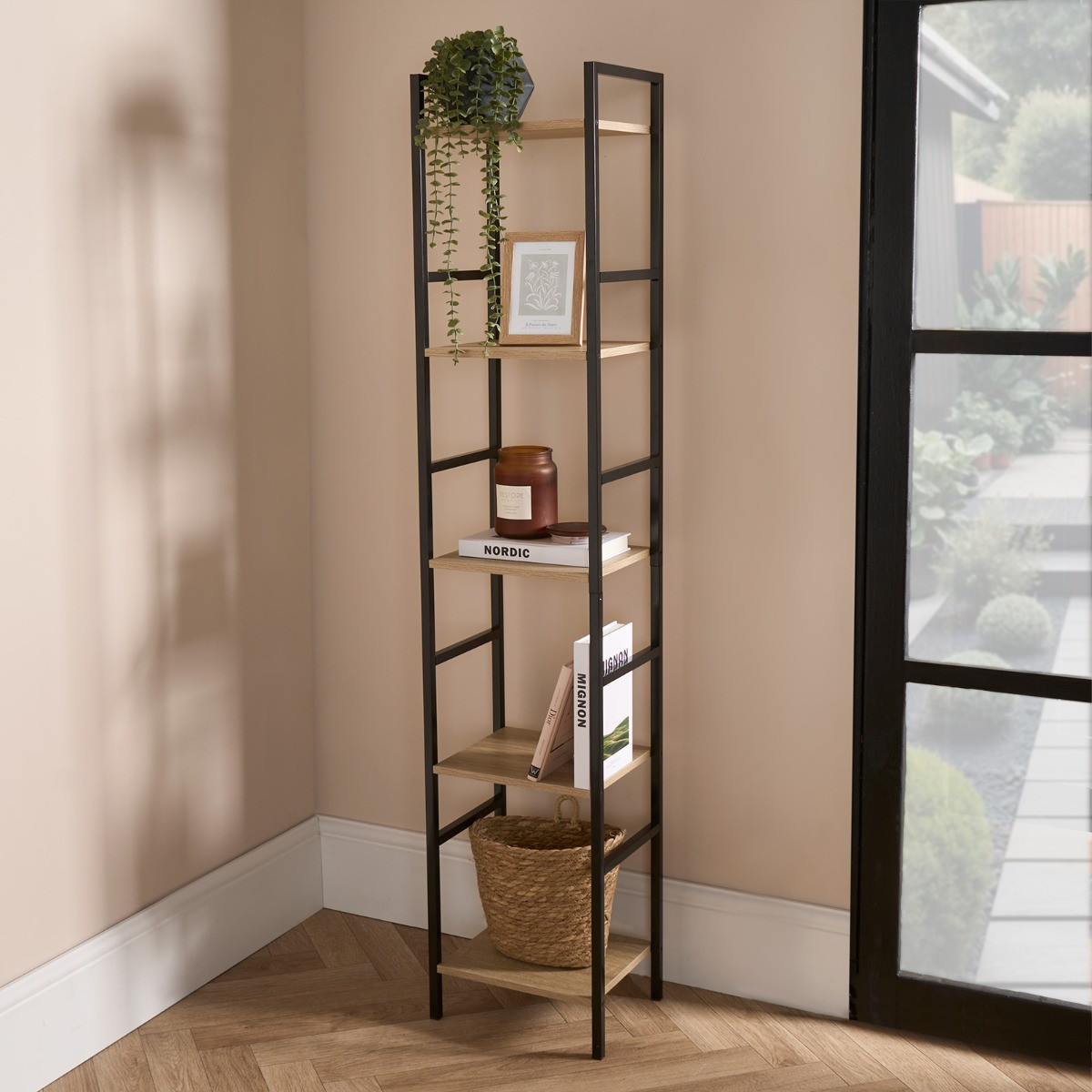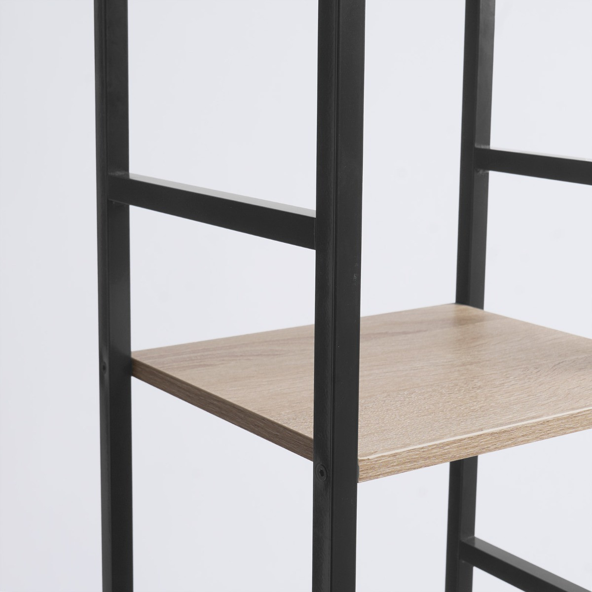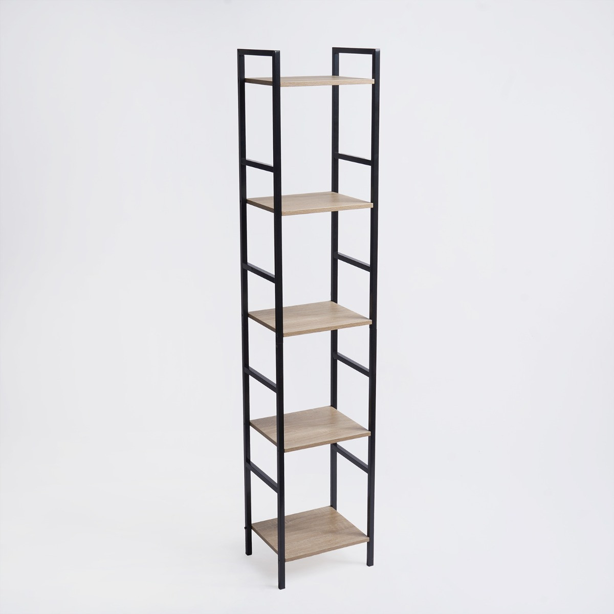 Elevate your storage and display solutions with the OHS Manhattan 5-Tier Shelving Unit. This sleek and functional shelving unit blends the warmth of wood with the modern edge of black metal, offering a stylish and practical addition to any room. The shelving unit features a combination of rich wooden shelves and a sturdy black metal frame. This blend of materials adds a contemporary and industrial touch to your decor, making it a versatile piece for various interior styles.