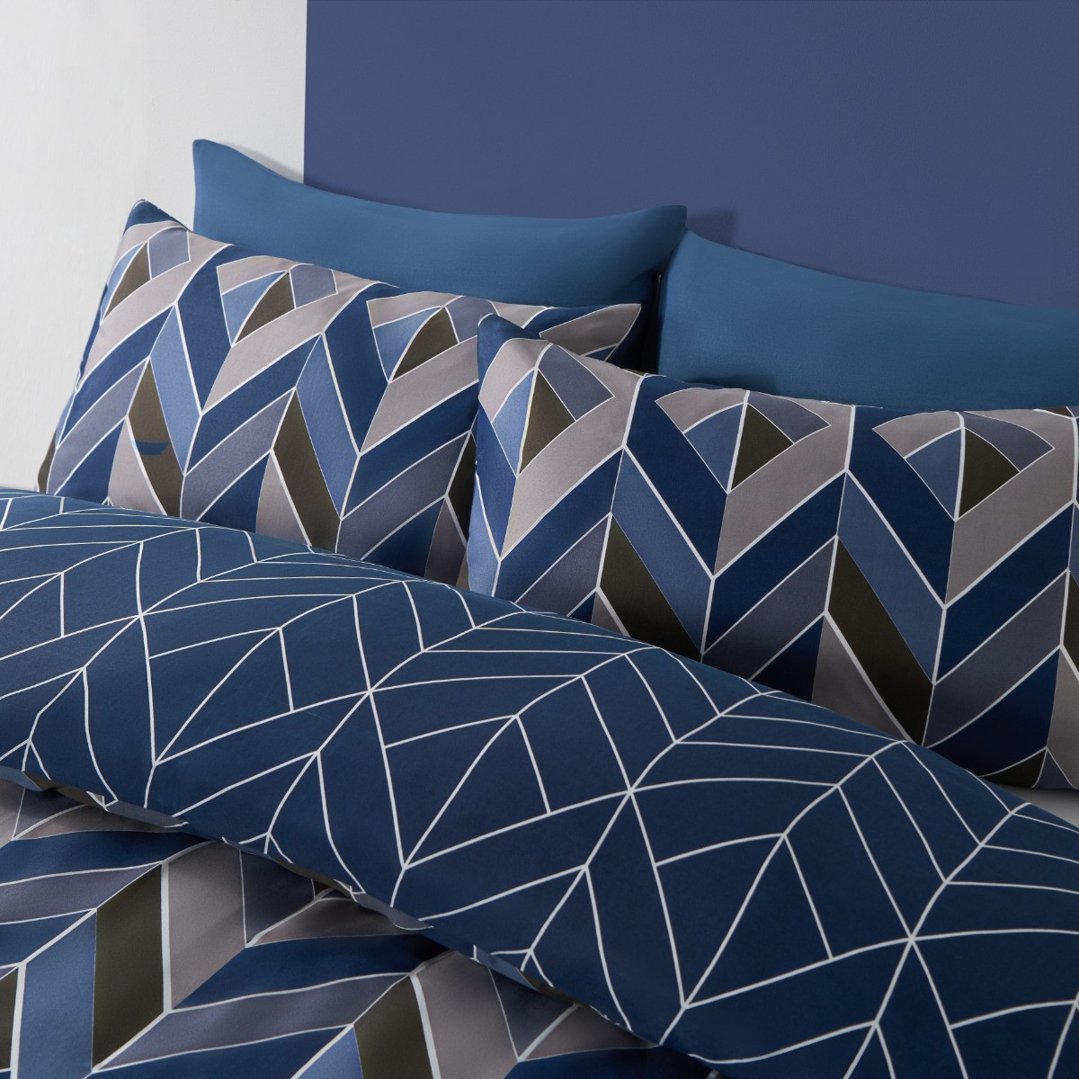 OHS Abstract Chevron Reversible Duvet Cover Set - Navy
