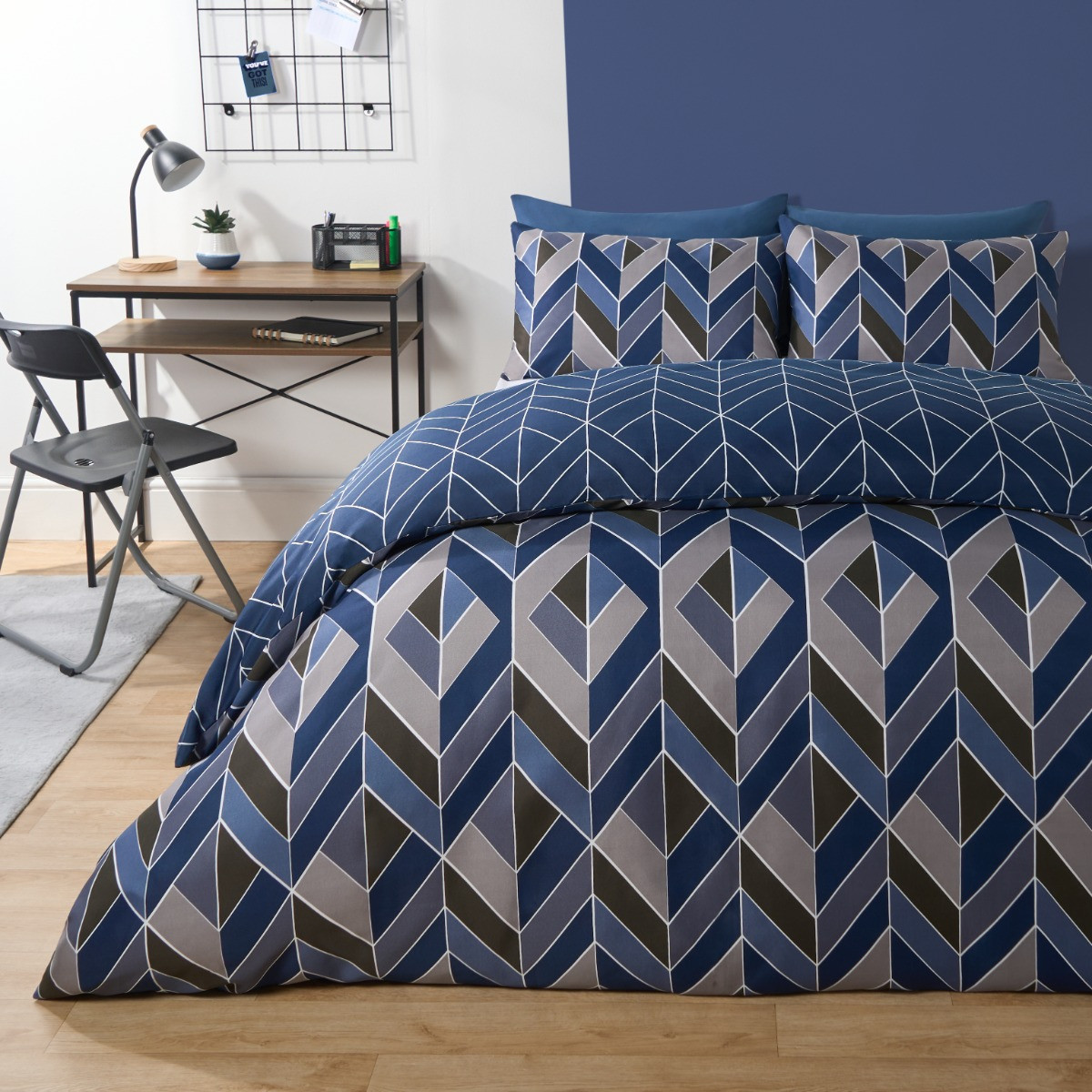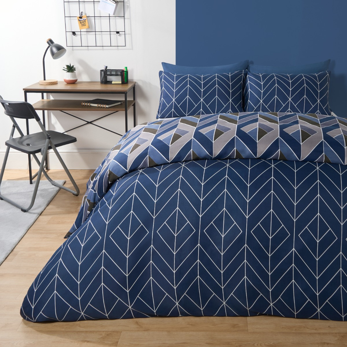 OHS Abstract Chevron Duvet Cover Set, Navy - King