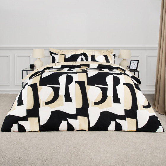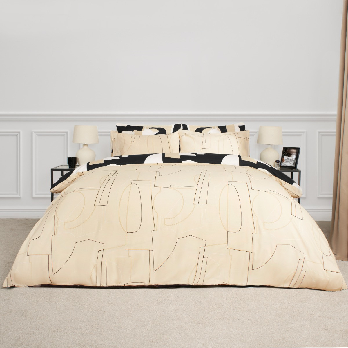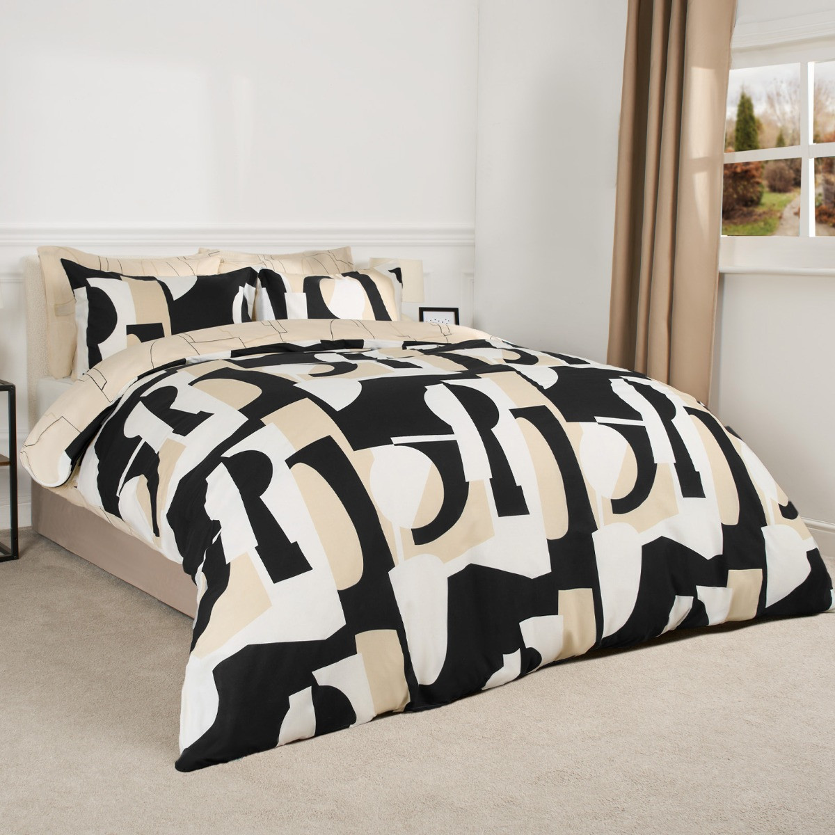 OHS Abstract Geo Duvet Set, Black/Natural - Double