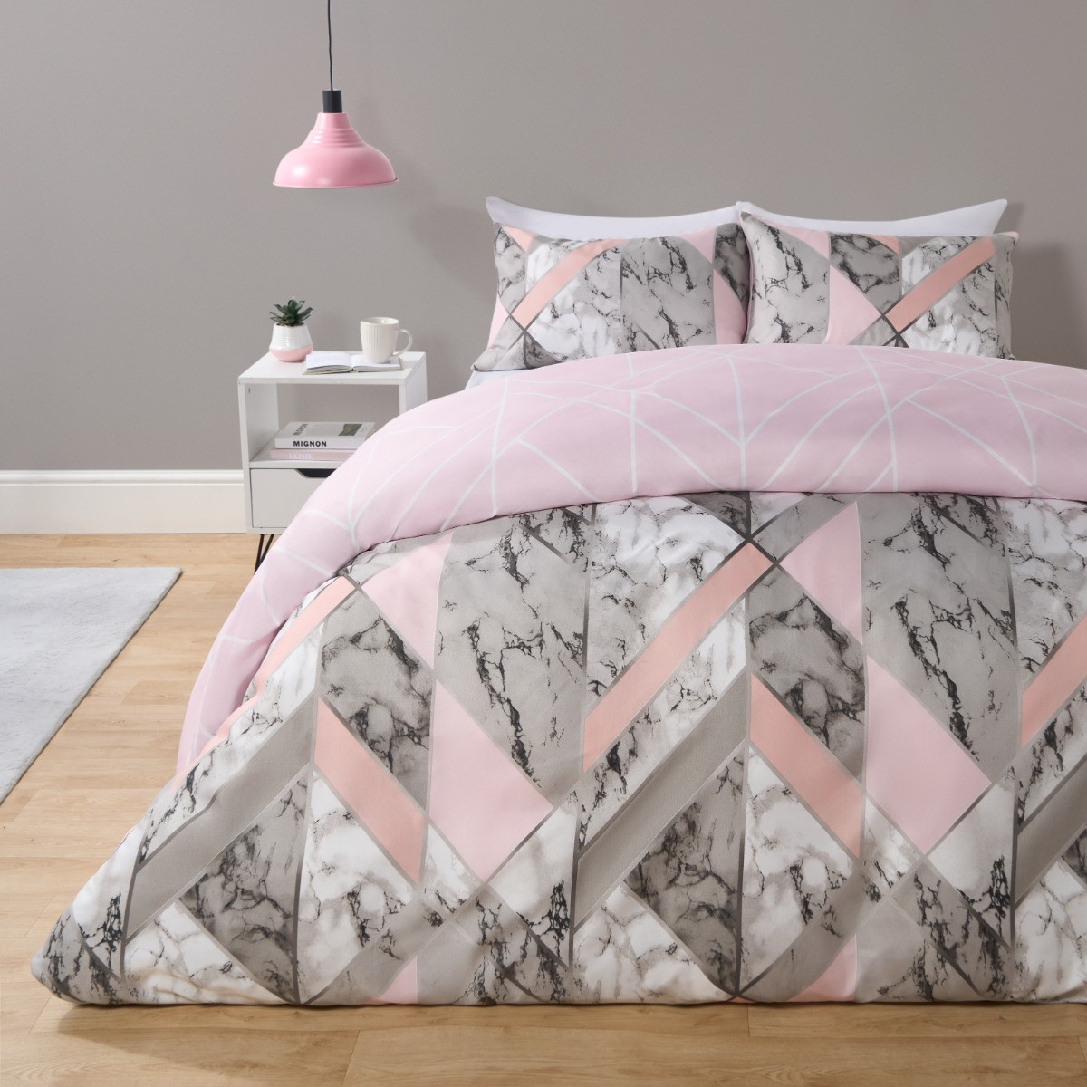 OHS Abstract Geometric Marble Print Duvet Cover Set, Blush - Single