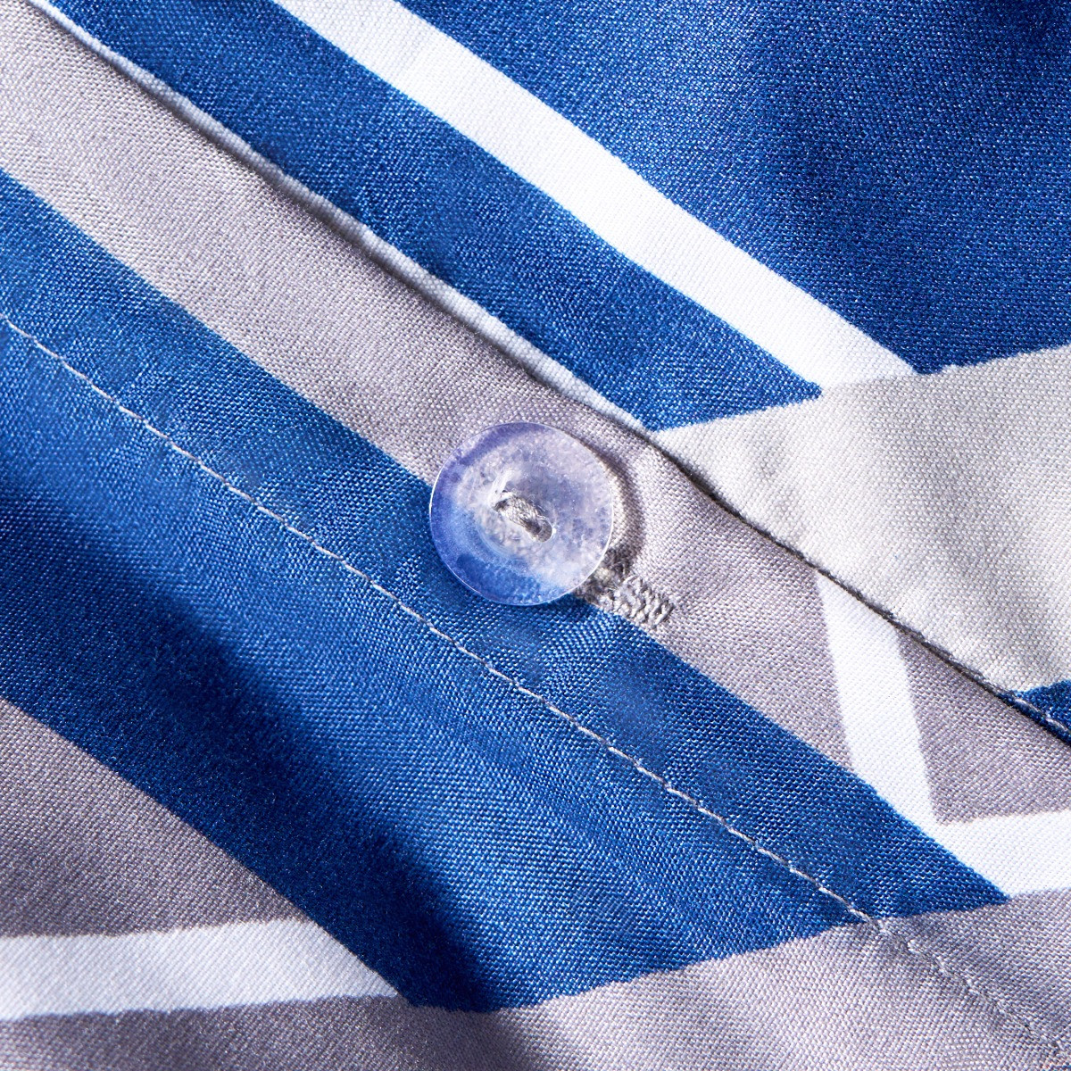 The OHS Geometric Print Reversible Duvet Set offers a striking abstract design in a harmonious blend of navy and grey. The set features a reversible design, allowing you to effortlessly switch between a printed grey side or a plain navy side. This versatile and eye-catching set adds a bold statement to any bedroom, while the flexibility of the two colour schemes ensures your bedding can reflect your mood and style with ease. Perfect for a modern and stylish update to your home. Available in the following sizes: