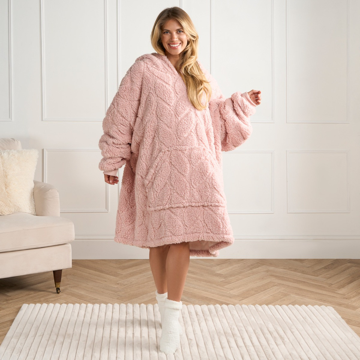 Introducing the OHS Adults Braided Fleece Hoodie Blanket in Blush, where plush comfort meets timeless style. This exquisite hoodie blanket features a charming braided texture on the outside, complemented by a soft, fleece-lined interior for ultimate cosiness. Perfect for relaxing at home, enjoying a movie night, or unwinding after a busy day, this hoodie blanket wraps you in warmth while adding a touch of elegance to your downtime. Embrace luxurious comfort and elevate your relaxation with this beautifully crafted piece.