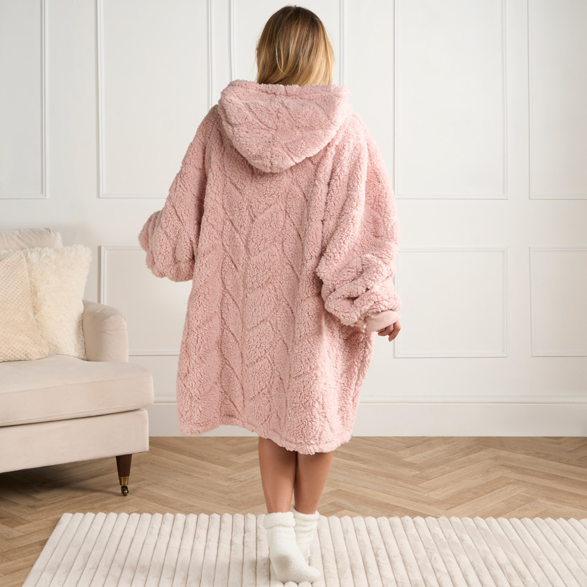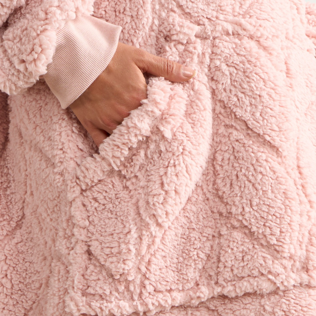 OHS Adults Braided Fleece Hoodie Blanket - Blush