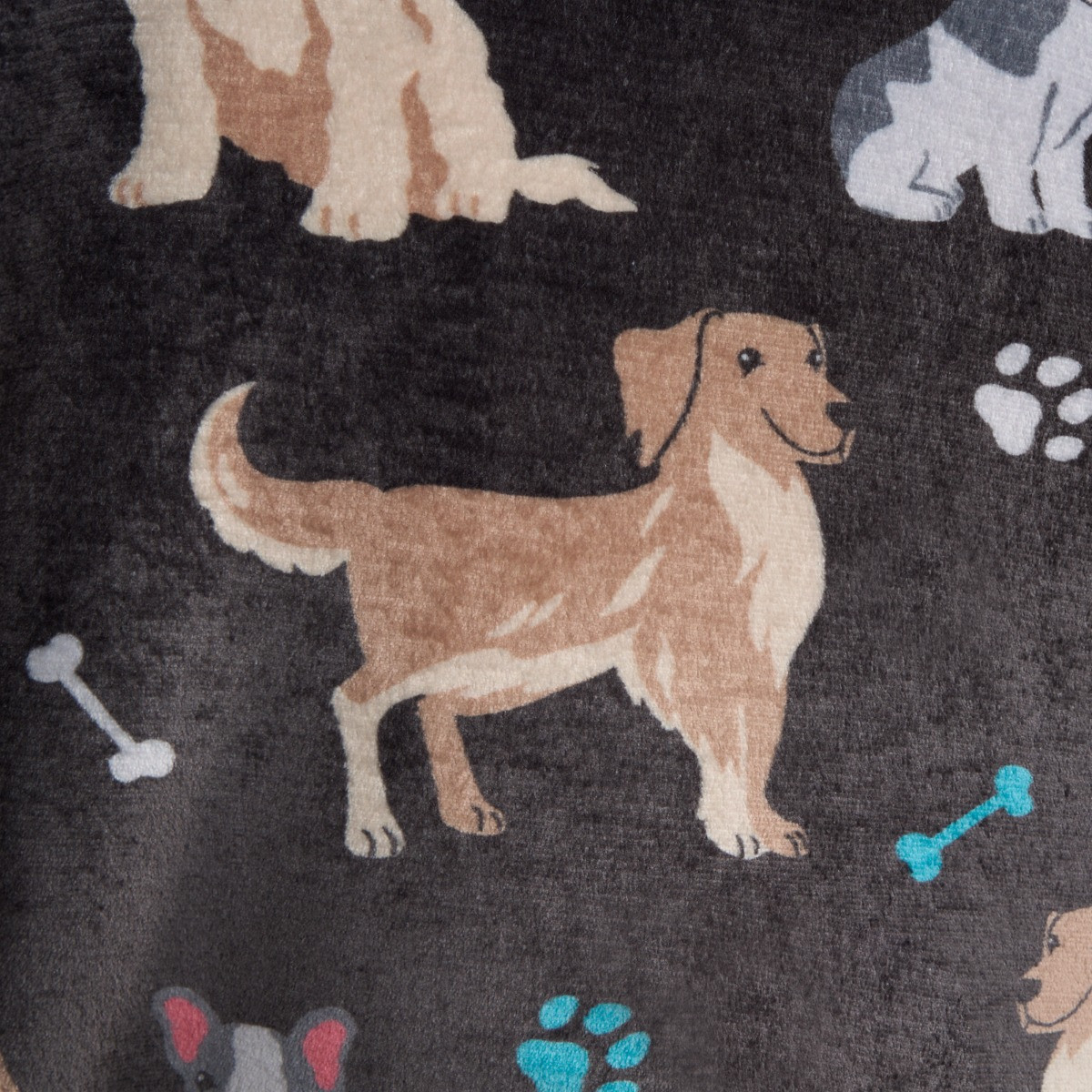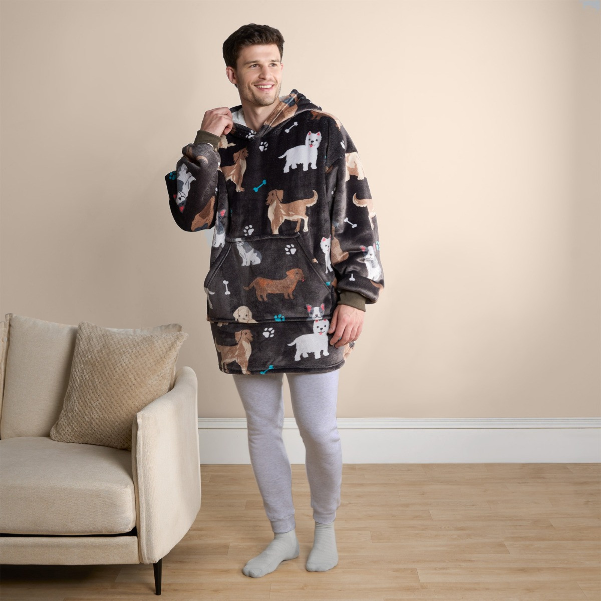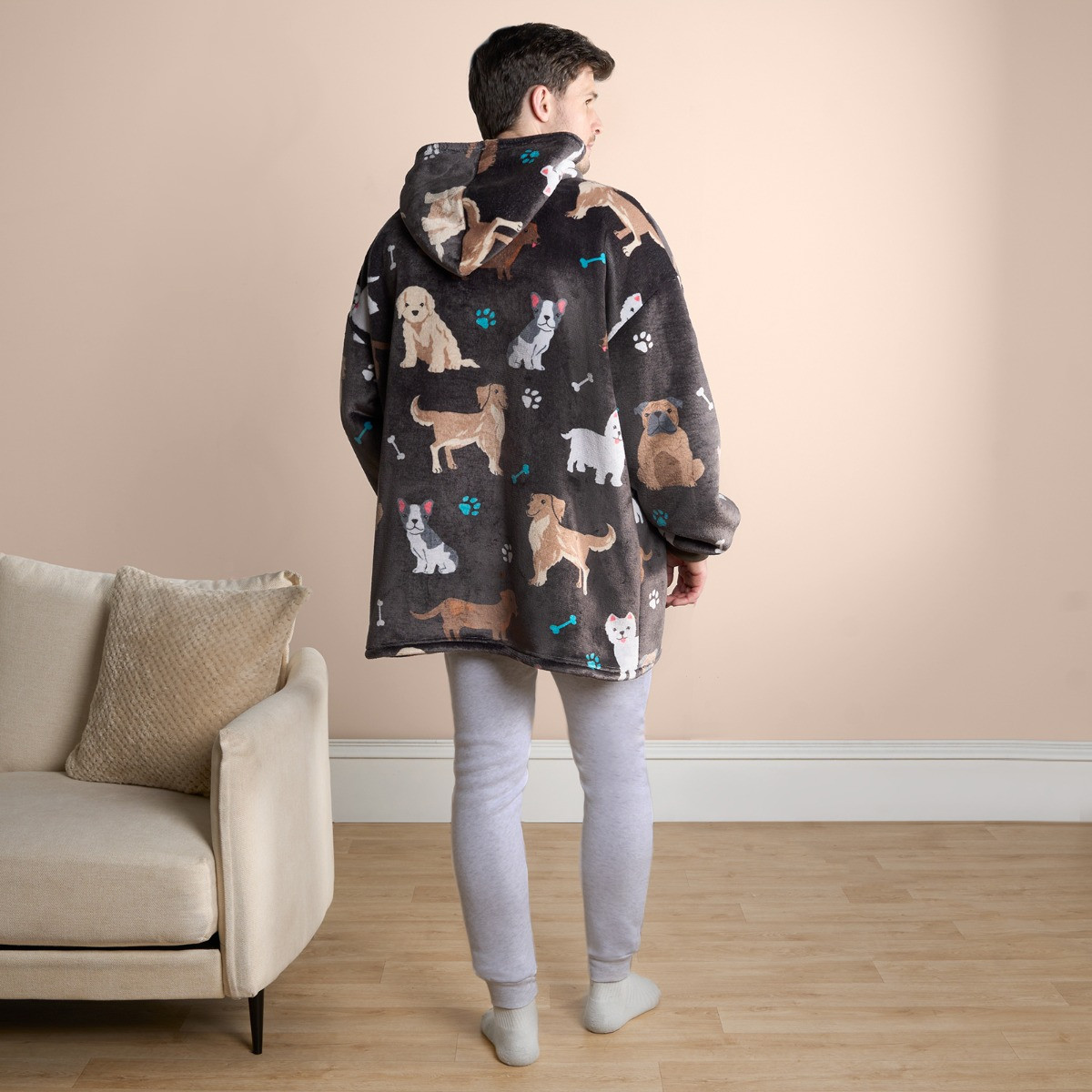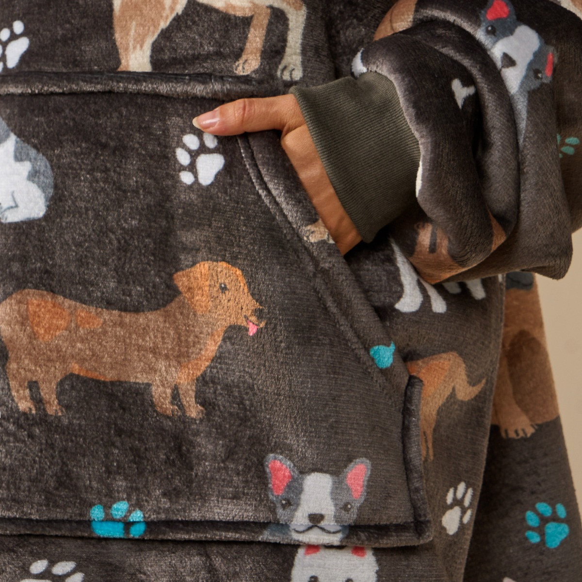 OHS Adults Dog Print Hoodie Blanket - Charcoal