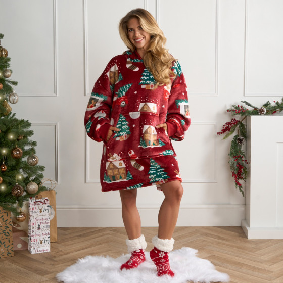 Embrace the festive season with the OHS Adults Home For Christmas Print Hoodie Blanket in Burgundy. This cozy hoodie blanket combines holiday cheer with ultimate comfort, making it the perfect companion for chilly winter nights and holiday gatherings. Adorned with a charming “Home For Christmas” print, this hoodie blanket captures the spirit of the season. The festive design adds a touch of holiday magic to your loungewear and helps create a warm and joyful atmosphere.