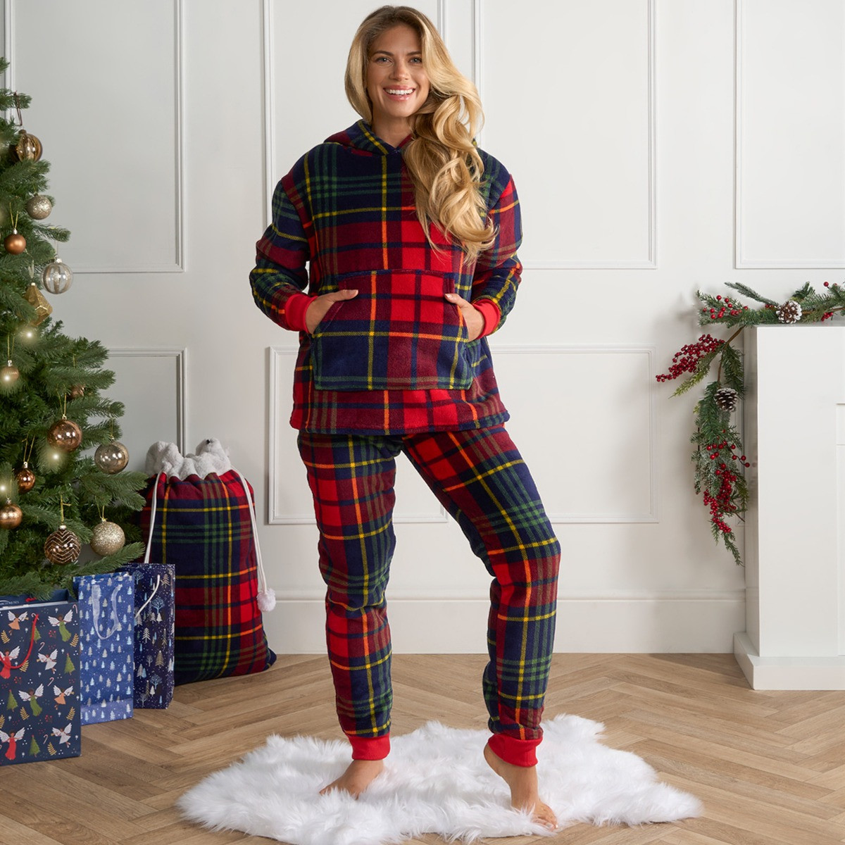 Elevate your comfort and style with the OHS Adults Oxford Check Fleece Hoodie Pyjama Set. Perfect for cozy nights in or relaxed weekends, this pyjama set combines a classic check pattern with the ultimate in warmth and softness, ensuring you stay stylish and comfortable. Featuring a timeless Oxford check design, this pyjama set showcases a sophisticated navy and white check pattern. The classic design adds a touch of elegance and versatility, making it a stylish choice for lounging or sleeping.
