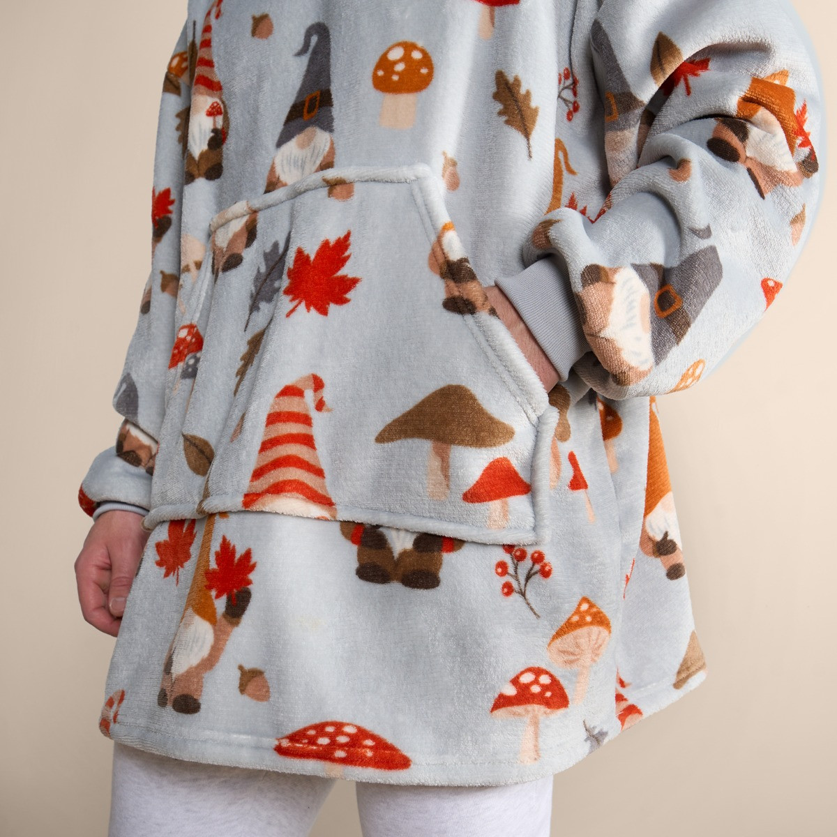 OHS Autumn Gonk Print Hoodie Blanket - Grey