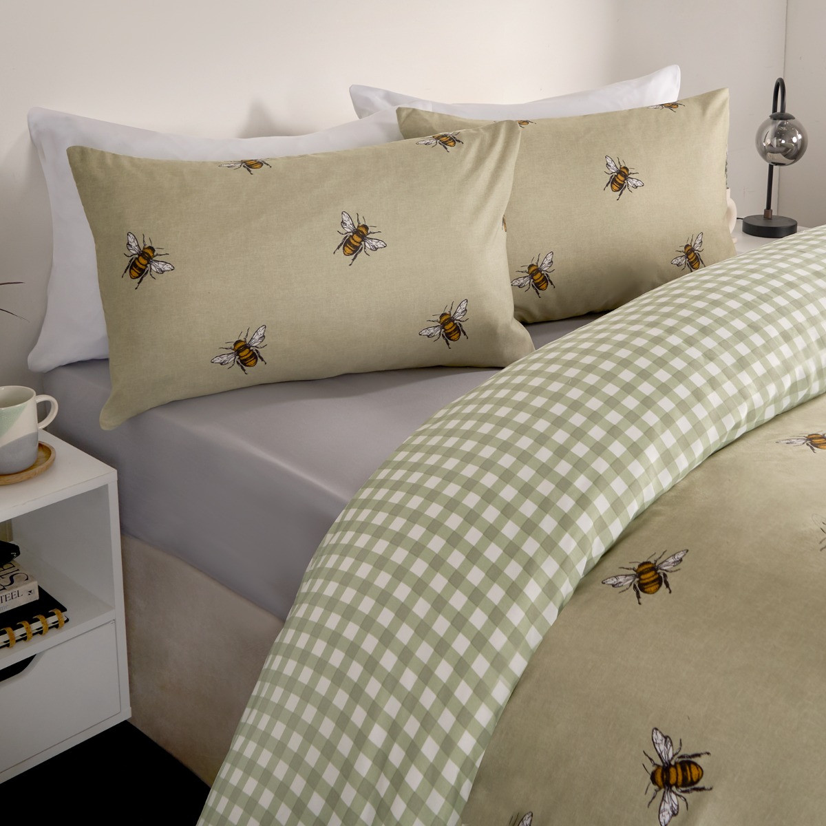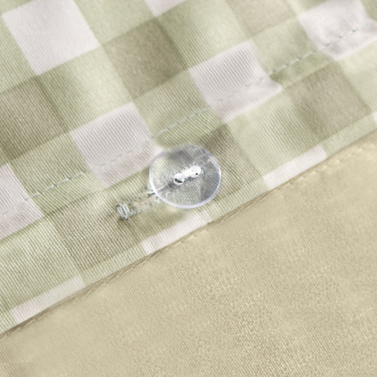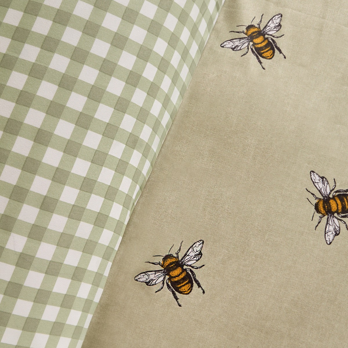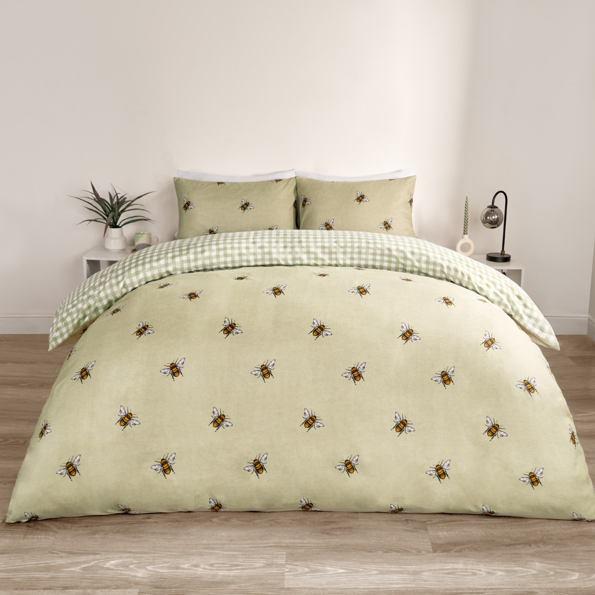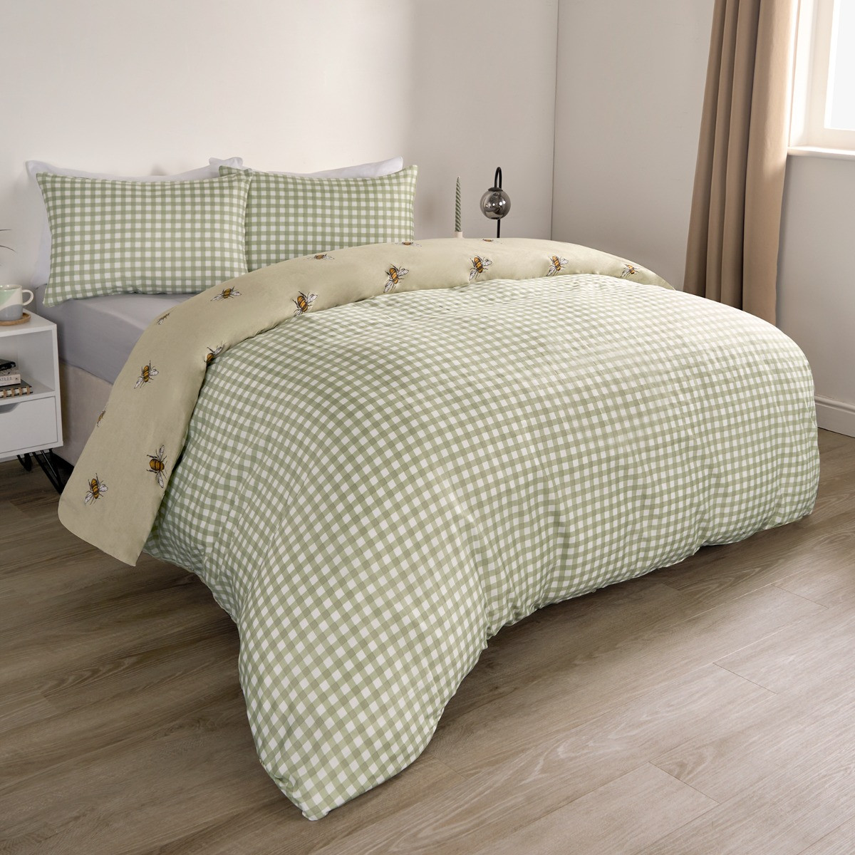 OHS Bee Print Reversible Gingham Duvet Set, Sage - Double