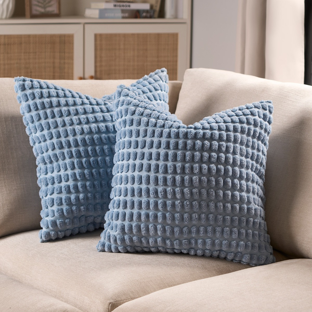 OHS Bobble Textured Cushion Covers - Blue