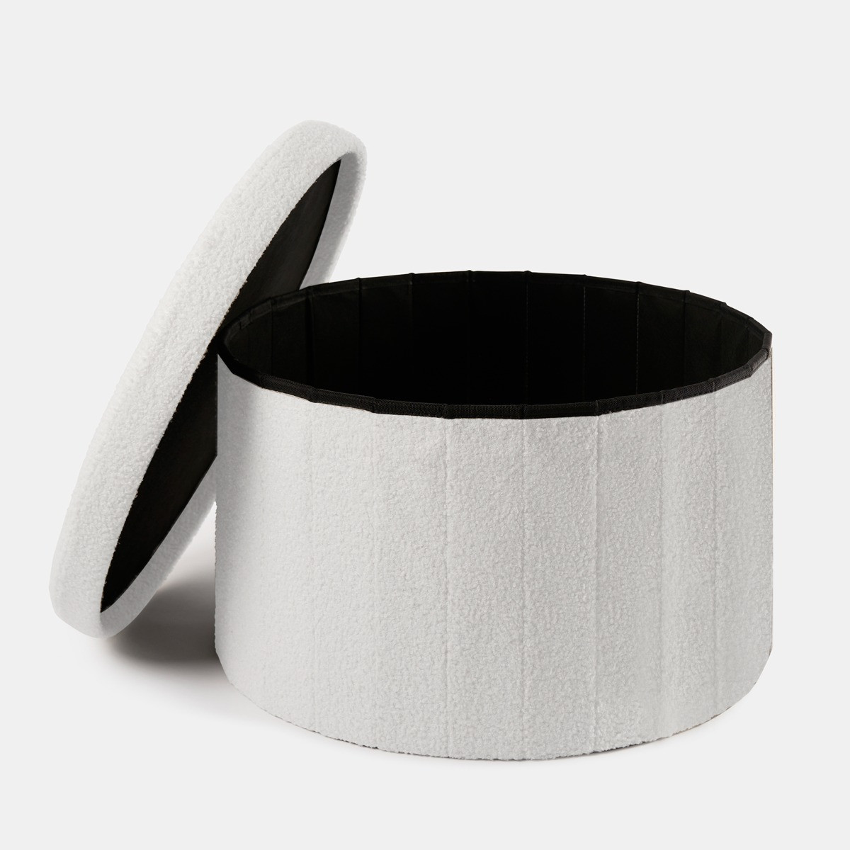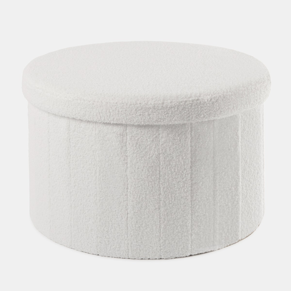 OHS Boucle Extra Large Round Storage Ottoman - White
