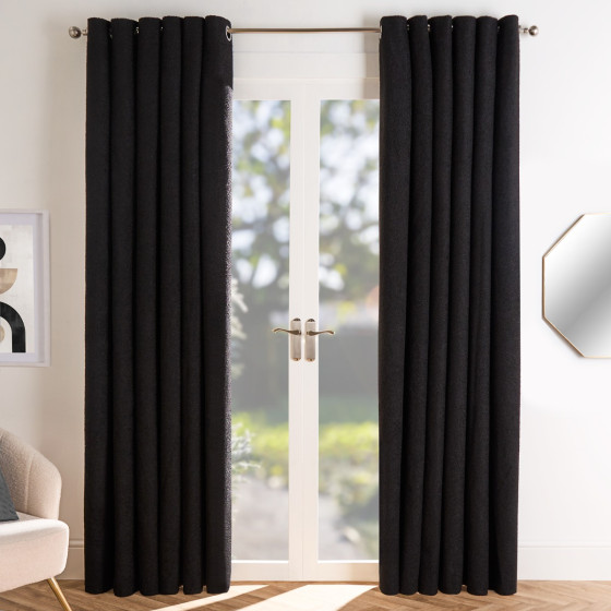OHS Bouclé Eyelet Curtains, Black - 66 x 90"