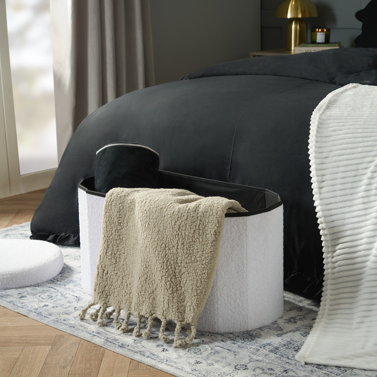OHS Boucle Foldable Lozenge Storage Ottoman - White
